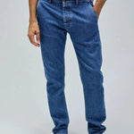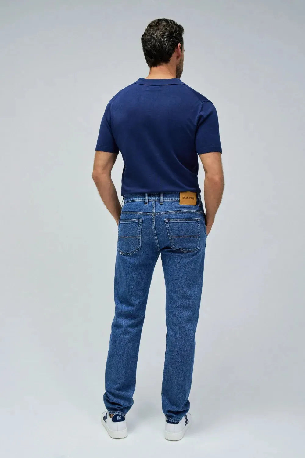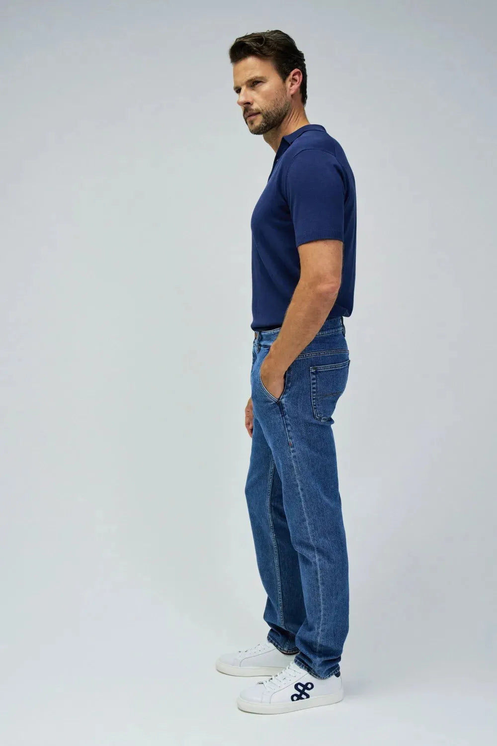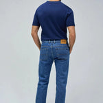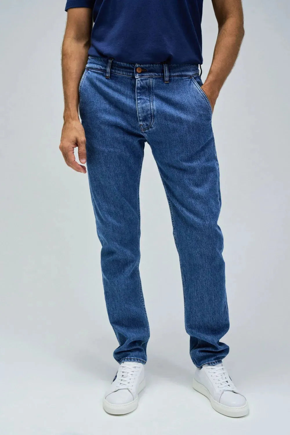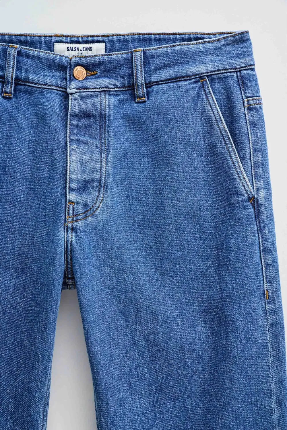 Slim-Fit-Jeans. Blaue Farbe. Schlankes Bein. Fünf Taschen. Mit Schlaufen. Tiefer Schuss. Mit Wascheffekten.