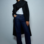 Wide-Leg-Jeans mit sehr hoher Leibhöhe zeichnen sich durch einen weiten, geraden und lockeren Schnitt entlang des gesamten Beins aus. Sie sind der aktuelle Trend für alle, die Komfort und Stil in einem Kleidungsstück suchen. Sie verleihen eine verlängerte, elegante und dennoch entspannte Silhouette.