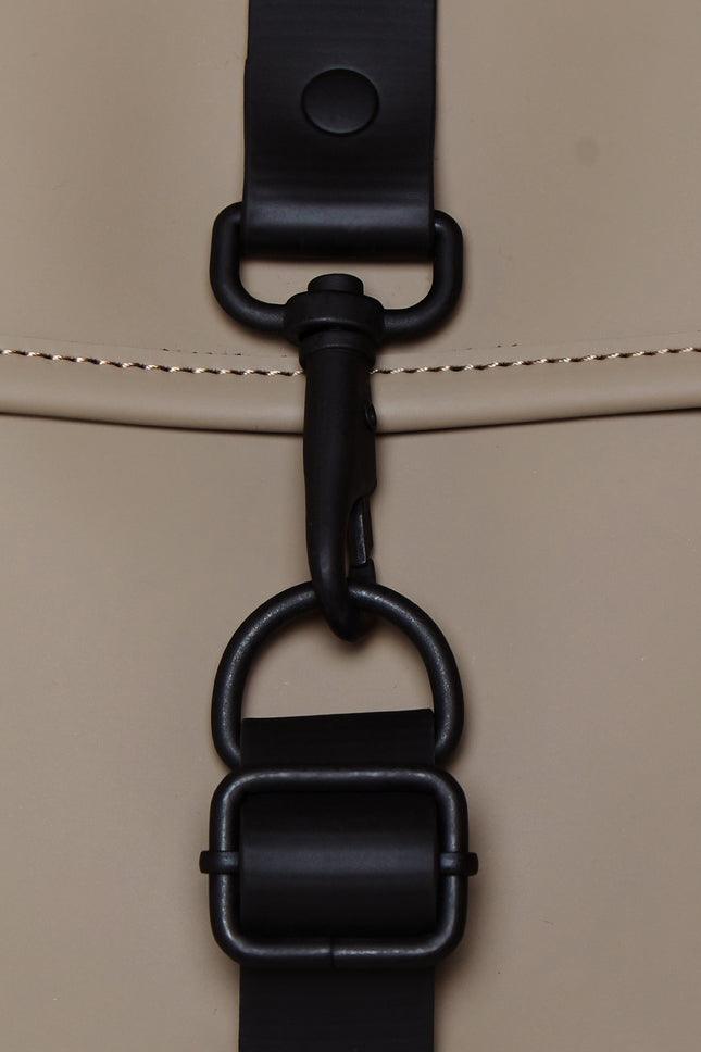 Der Bucket Backpack ist ein wasserdichter Rucksack aus Rains charakteristischem PU-beschichtetem Stoff. Das Design ist eine kastenförmige Interpretation eines klassischen Rucksacks, der an eine Retro-Kordelzugtasche erinnert. An der Seite der Tasche sind TPU-Rückengurte für einen entspannten Look angebracht. Der Bucket Backpack verfügt über ein Hauptfach mit einer Innentasche mit Reißverschluss für kleinere Gegenstände und ist mit dem charakteristischen Karabinerverschluss von Rains versehen.