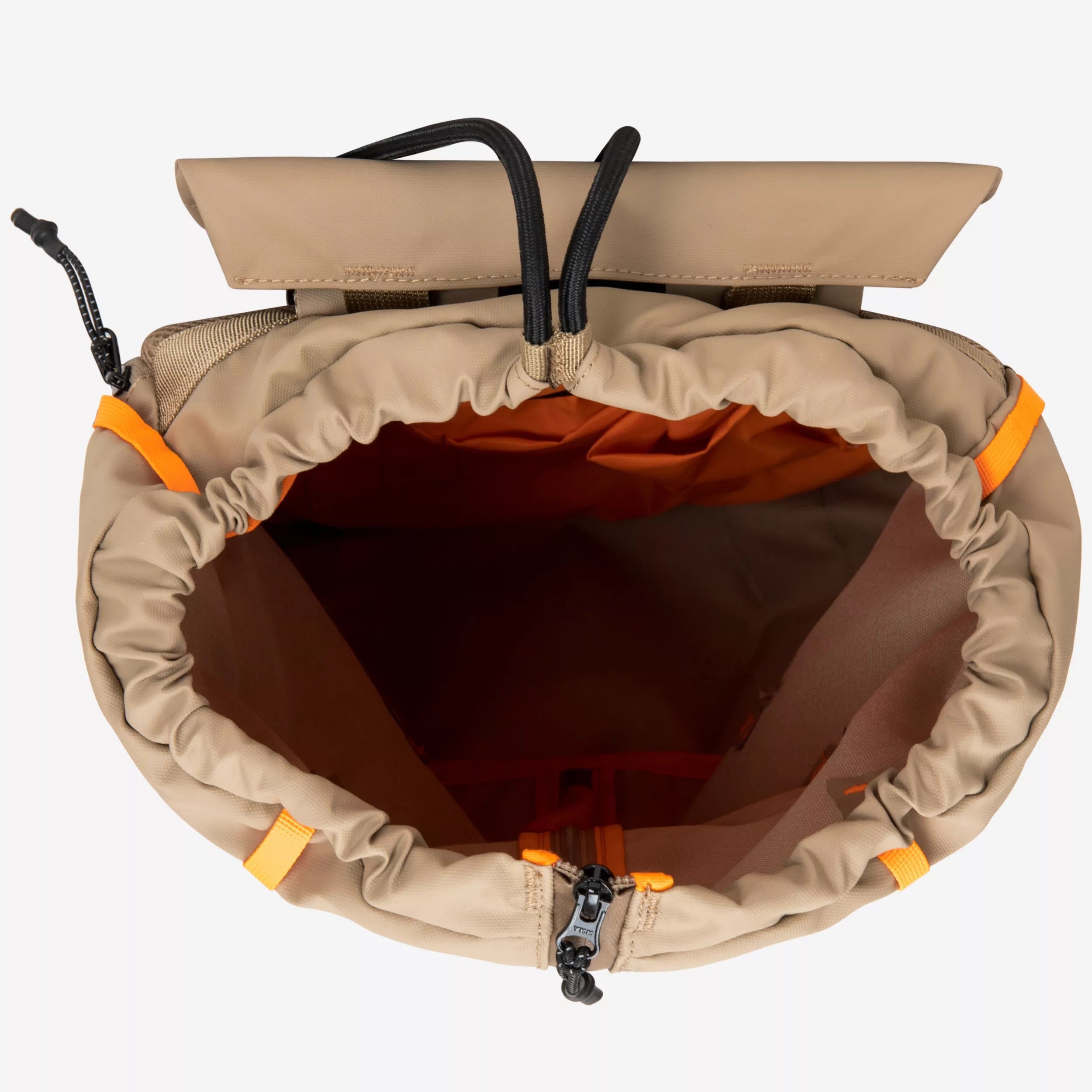 Die Klappe ist mit einem verstellbaren Clipverschlusssystem gesichert. Die beweglichen Karabinerhaken können an verschiedenen Befestigungspunkten positioniert werden, sodass sich der Rucksack an Form und Volumen Ihrer Ausrüstung anpassen lässt. Der Frontzugang mit Doppelreißverschluss ermöglicht einfachen Zugriff auf wichtige Gegenstände, ohne den Rucksack auspacken zu müssen.