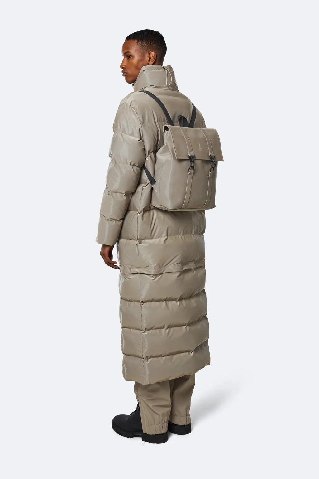 MSN Mini ist eine kleinere Version der klassischen MSN Bag von Rains. Die MSN-Silhouette wurde von der traditionellen Schultasche inspiriert und besteht aus dem charakteristischen wasserdichten Stoff von Rains. Die vollständig gefütterte, wasserdichte und dennoch modische MSN Mini hat ein Hauptfach und verstellbare Druckknöpfe an den Seiten. Der MSN Mini ist mit den charakteristischen Gurtbändern und Karabinerhaken von Rains versehen.
