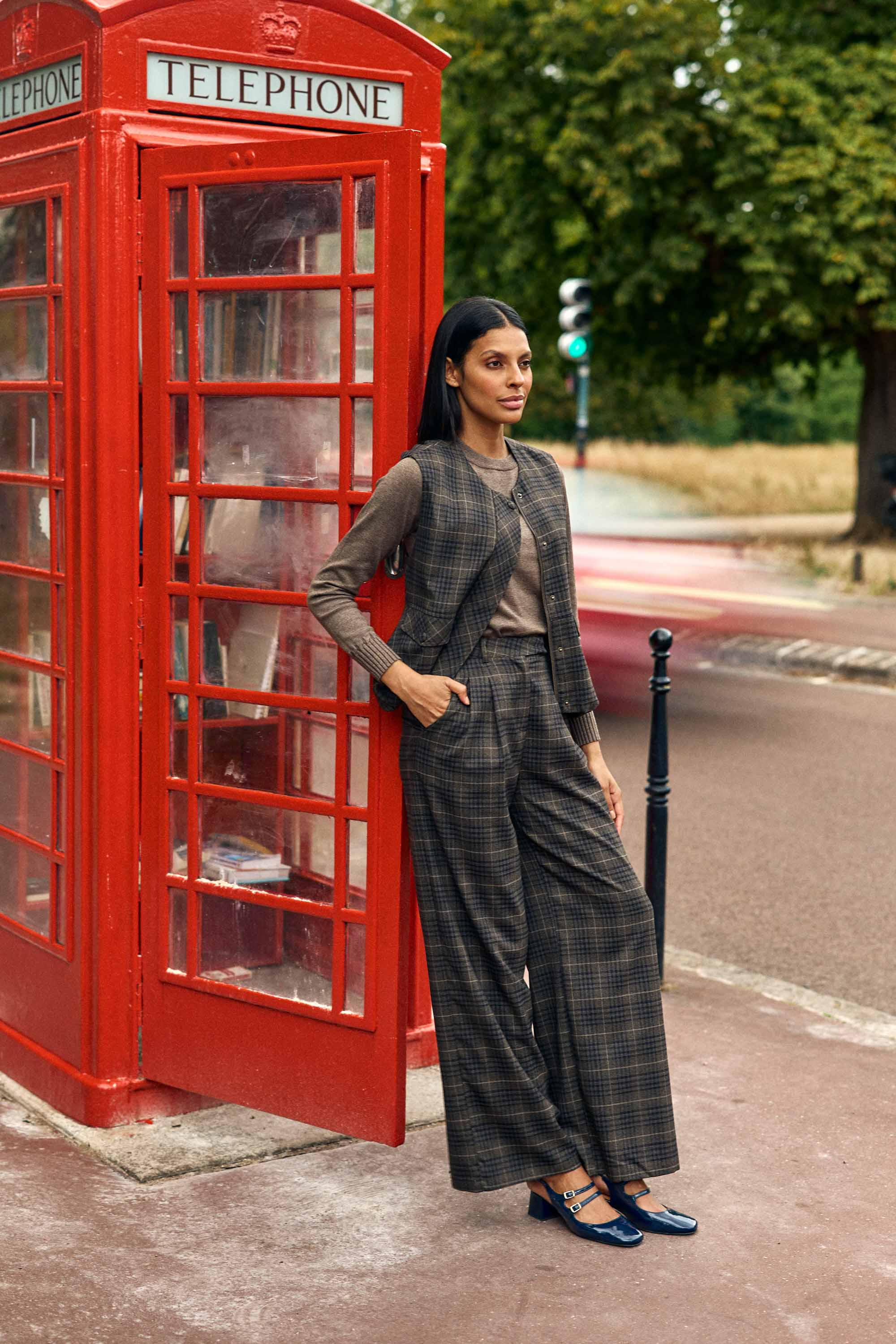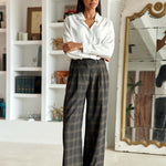 El estampado de cuadros convierte al pantalón en una pieza de impacto visual que se integra fácilmente con prendas lisas o capas estructuradas, aportando un toque de sofisticación casual al armario de entretiempo.