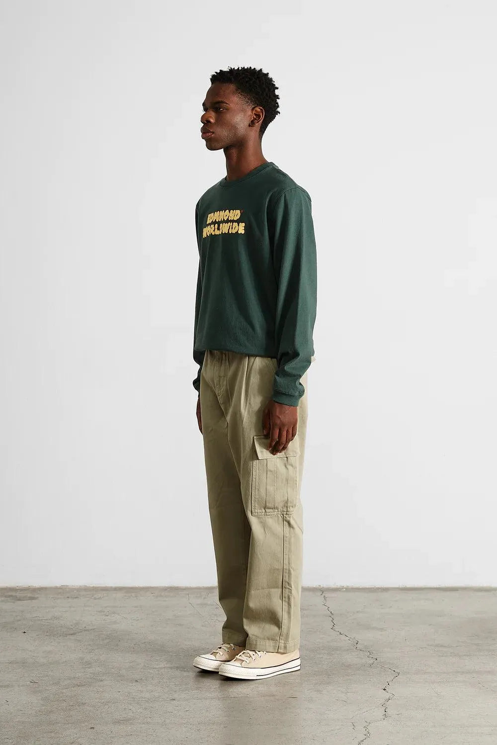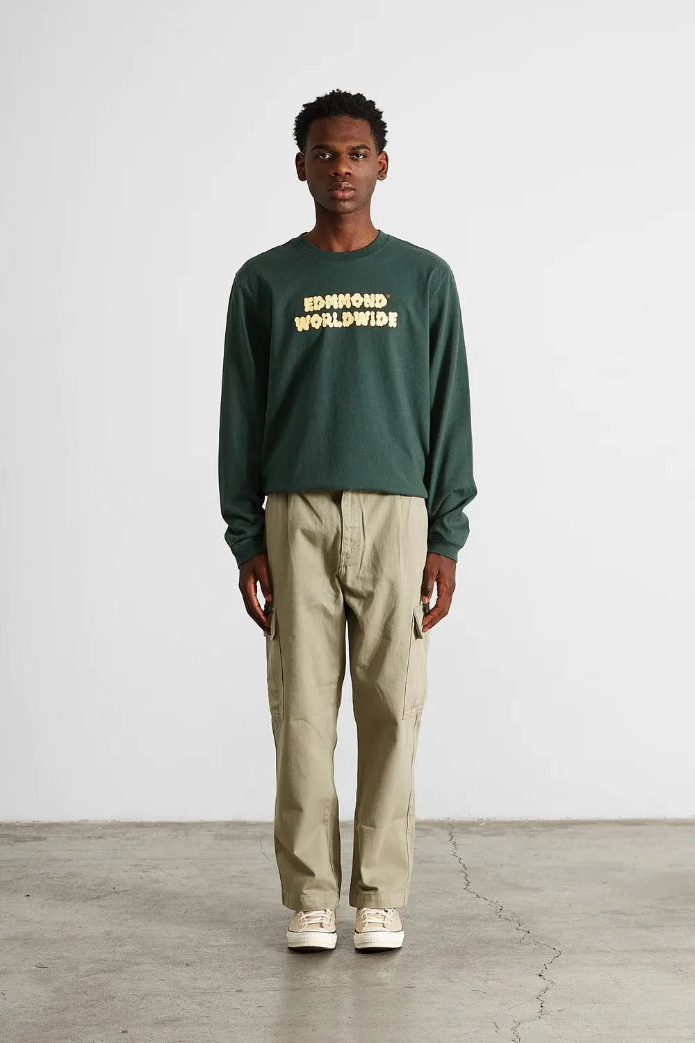 Edmmond Studios Puff Langarm-T-Shirt, schlichtes Dunkelgrün