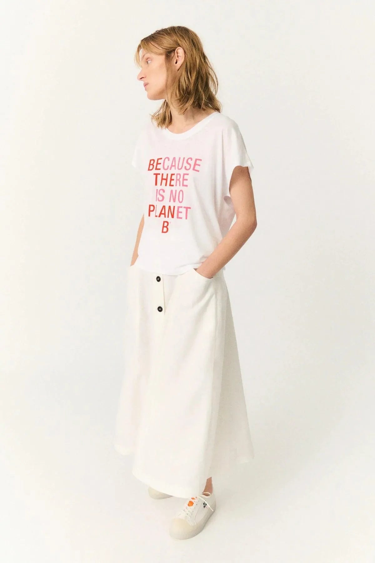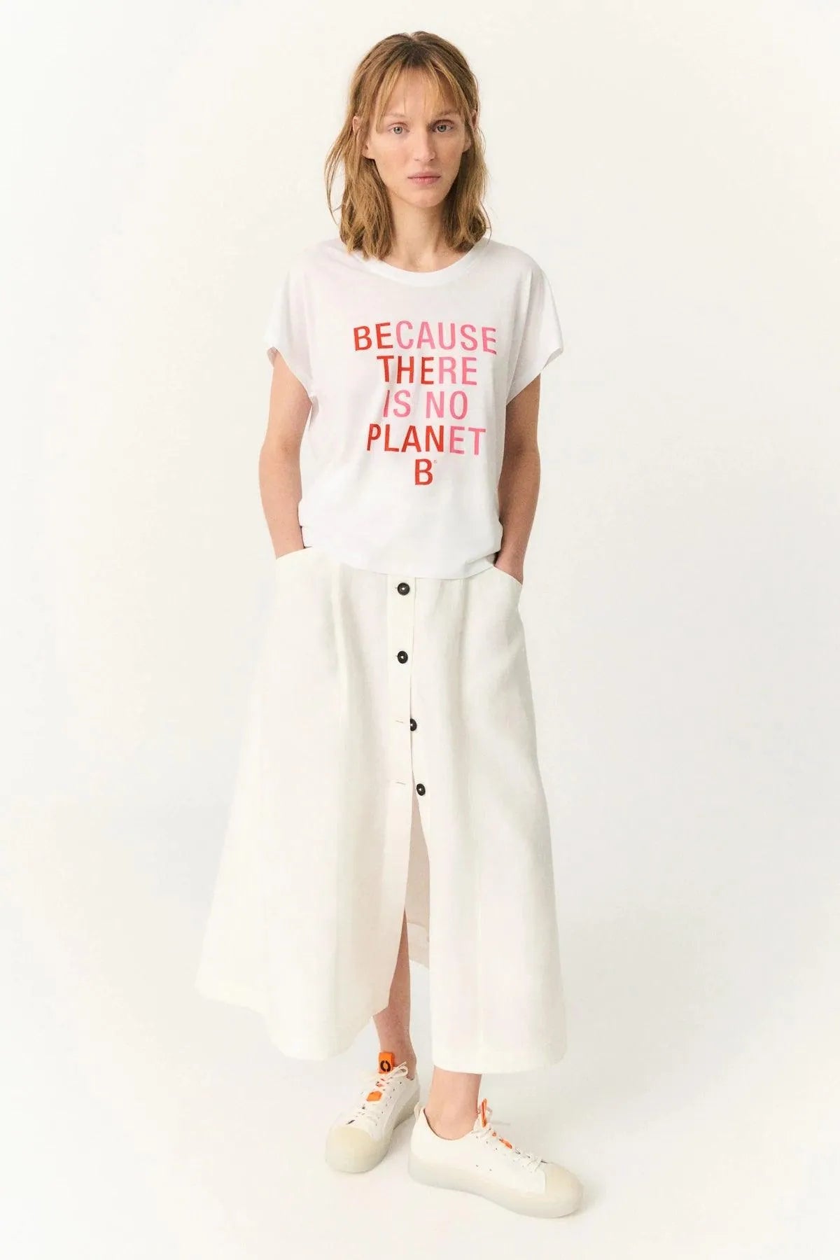 Das Rio Tanktop für Damen besteht aus einer Mischung aus Bio- und recycelter Baumwolle, Stoffen, die uns helfen, den Wasserfußabdruck im Herstellungsprozess zu reduzieren, und die es außerdem zu einem atmungsaktiven und bequemen Kleidungsstück machen. Auf der Vorderseite ist der Satz „Because there is no Planet B“ aufgedruckt. Es ist ein Basic für die heißesten Tage.