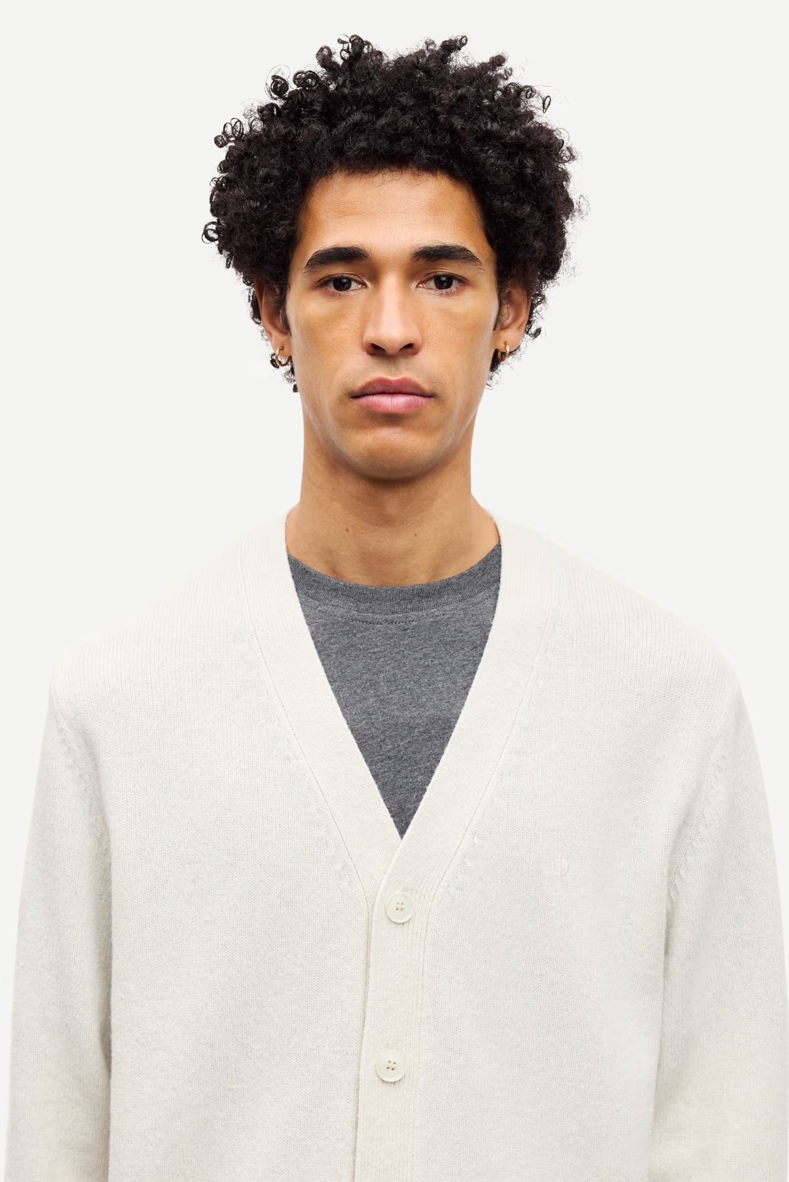 Descubre el cardigan “Sapatrik Cardigan 132 Silver Birch” de Samsøe Samsøe: un diseño de punto en mezcla de lana 80 % (Wool RWS certificada) que aporta suavidad y sostenibilidad. Con corte regular, cuello en V, puños y bajo en canalé y discreto bordado de la marca en el pecho, este cardigan se convierte en una pieza esencial en el armario masculino contemporáneo. Su color “Silver Birch” le confiere un tono neutro, elegante y versátil, perfecto tanto para estilismos casuales como para looks más depurados. Altura desde hombro hasta bajo de 69 cm en talla L, lo que facilita combinarlo con camisetas, camisas o camisetas de cuello alto. Ideal para temporadas de entretiempo o como capa ligera en invierno, este cardigan se adapta al ritmo urbano con un enfoque de estilo nórdico minimalista. Elige esta prenda de alta calidad para sumar a tu colección de moda contemporánea.