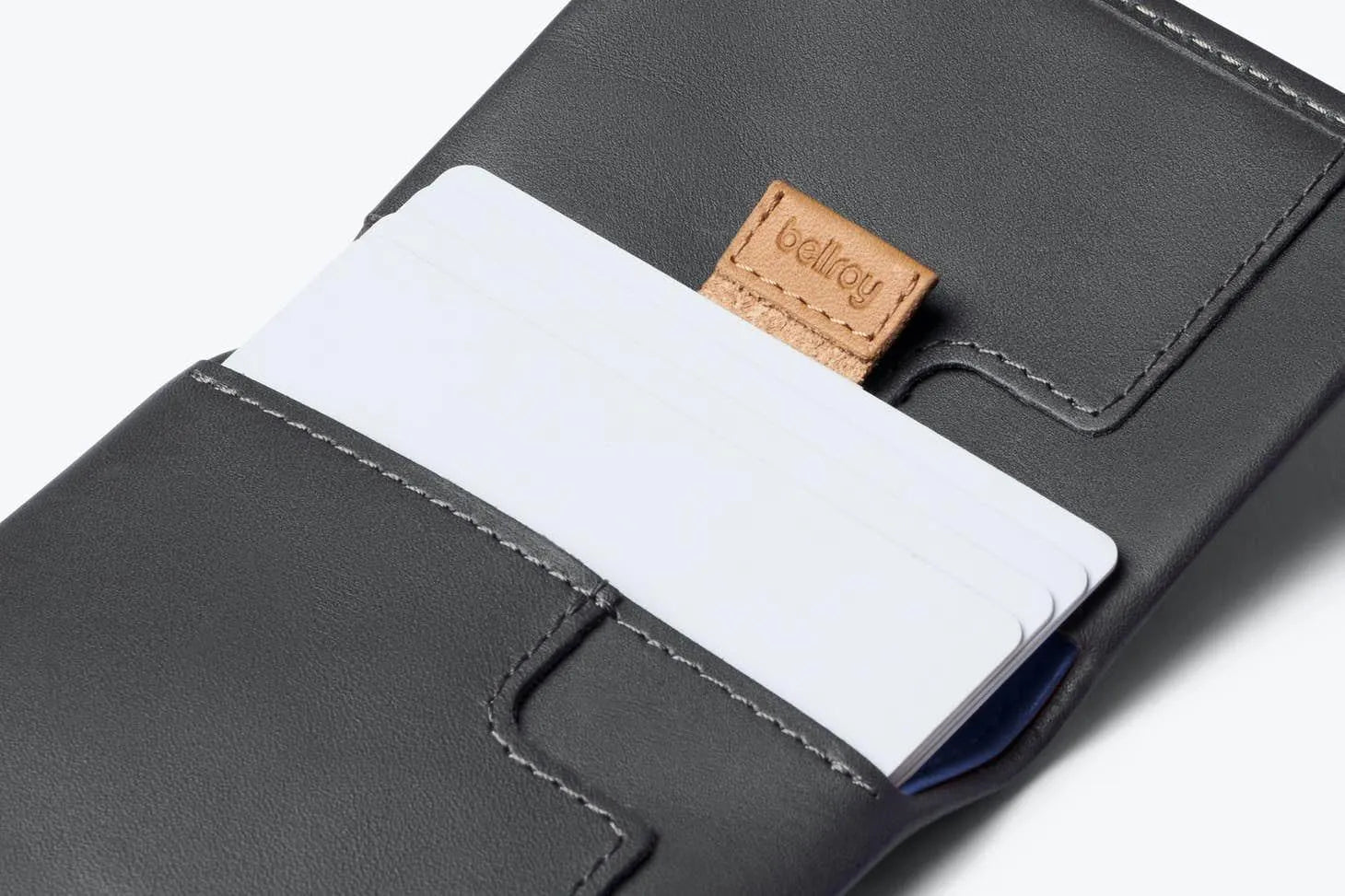 Das Slim Sleeve Wallet ist optisch leicht zu unterschätzen, aber es schafft eine echte Balance zwischen Größe und Funktionalität. Die beiden am häufigsten verwendeten Karten werden in die externen Steckplätze gesteckt, während eine Lasche den Zugriff auf die weniger häufig verwendeten erleichtert. Die meisten Währungen passen in der Mitte zusammengefaltet und alles lässt sich ordentlich in einer schönen, kompakten Brieftasche verstauen.