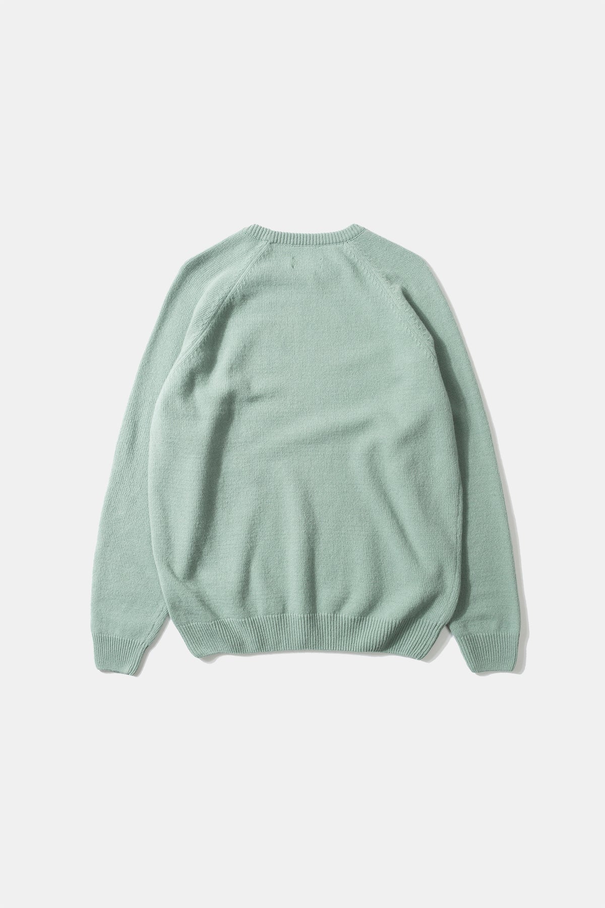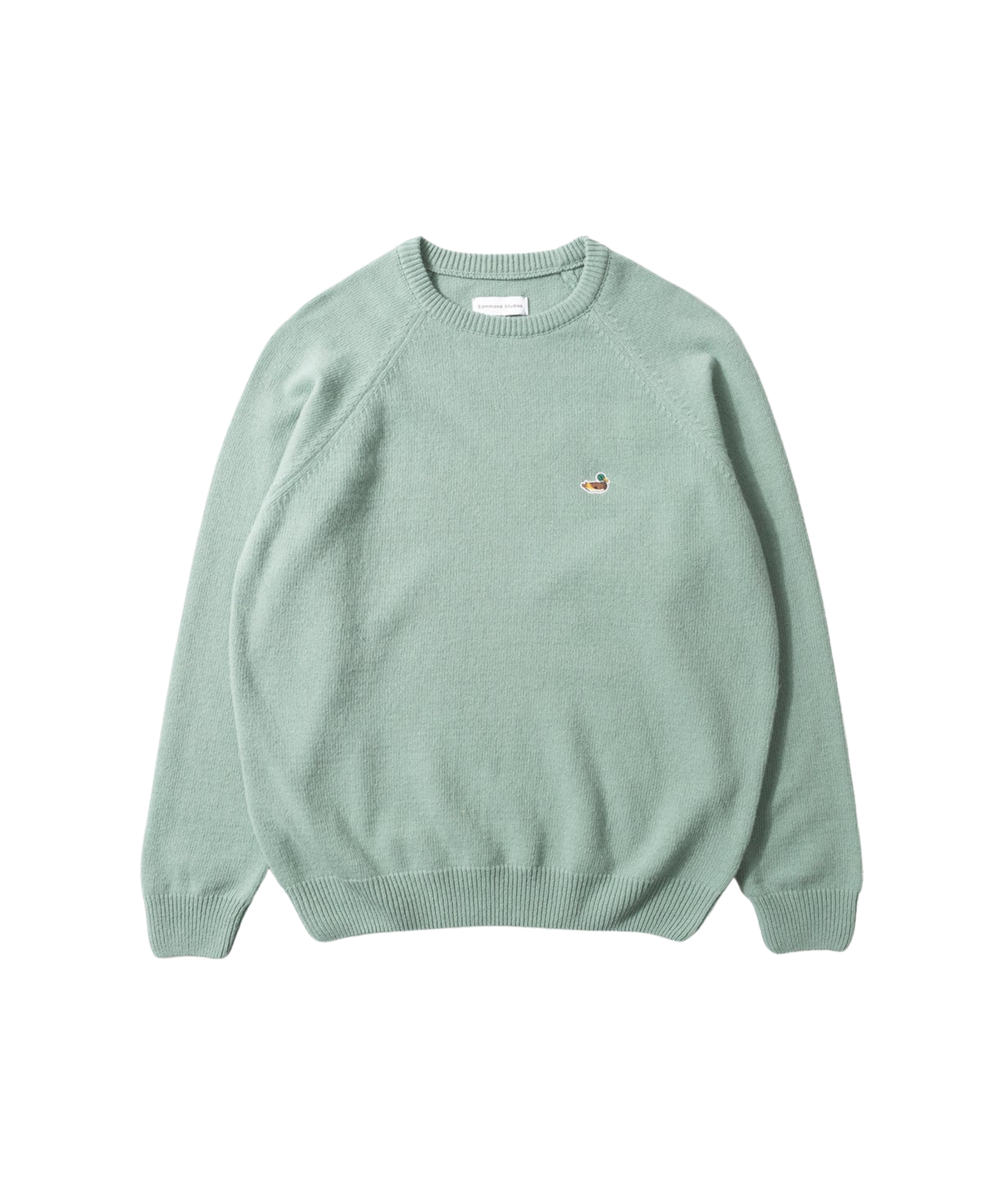 Jersey clásico verde claro de cuello caja, confeccionado con lana. Acabada con nuestro emblemático logotipo de pato bordado en la parte izquierda del pecho. Fabricada en España.