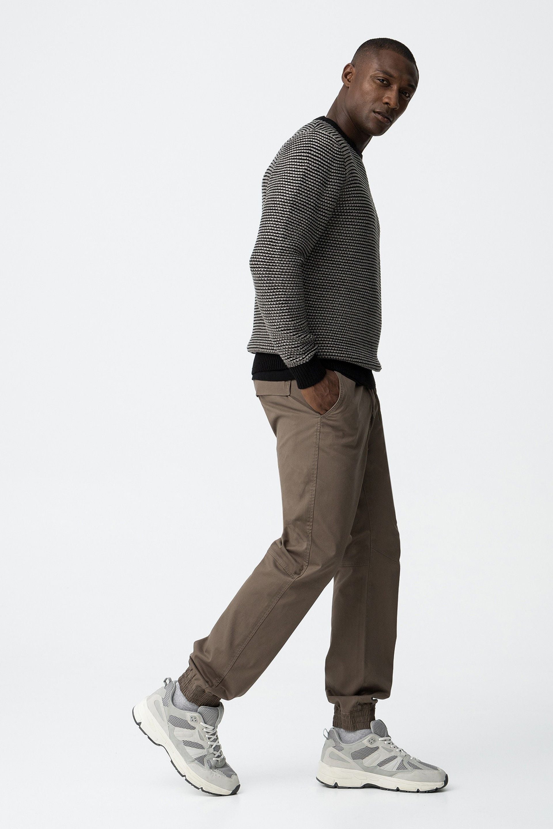 Twill-Jogginghose mit drei Taschen und elastischem Kordelzugbund. Elastischer Saum. 98 % Baumwolle, 2 % Elastan.