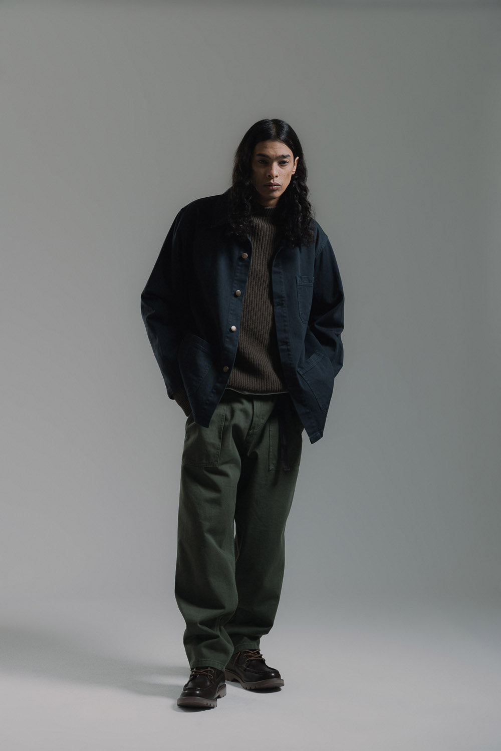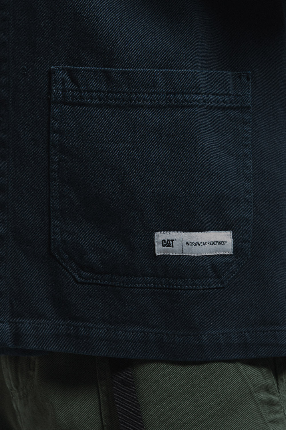 Sobrecamisa tipo overshirt en tejido twill de construcción robusta y corte estructurado, diseñada para usarse como capa ligera. Su diseño con tres bolsillos frontales, inspiración workwear, y el tono profundo “Blue Nights” le dan un carácter versátil y duradero.