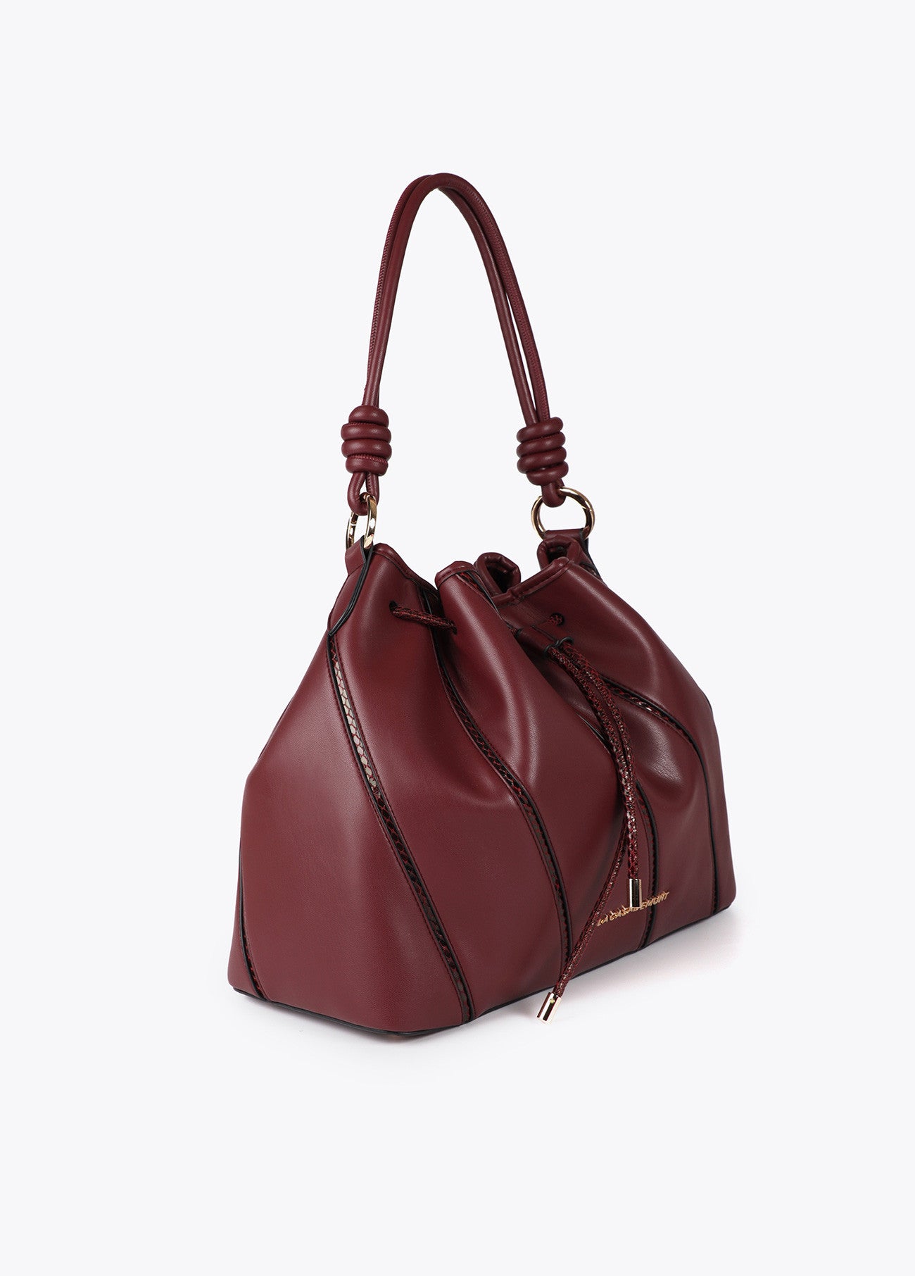 Bolso de diseño sofisticado con detalles en efecto piel de serpiente. Confeccionado en material de alta calidad, ofrece un cierre de cordón ajustable y amplio interior. Asa superior reforzada para mayor comodidad. Ideal para un estilo chic y elegante.