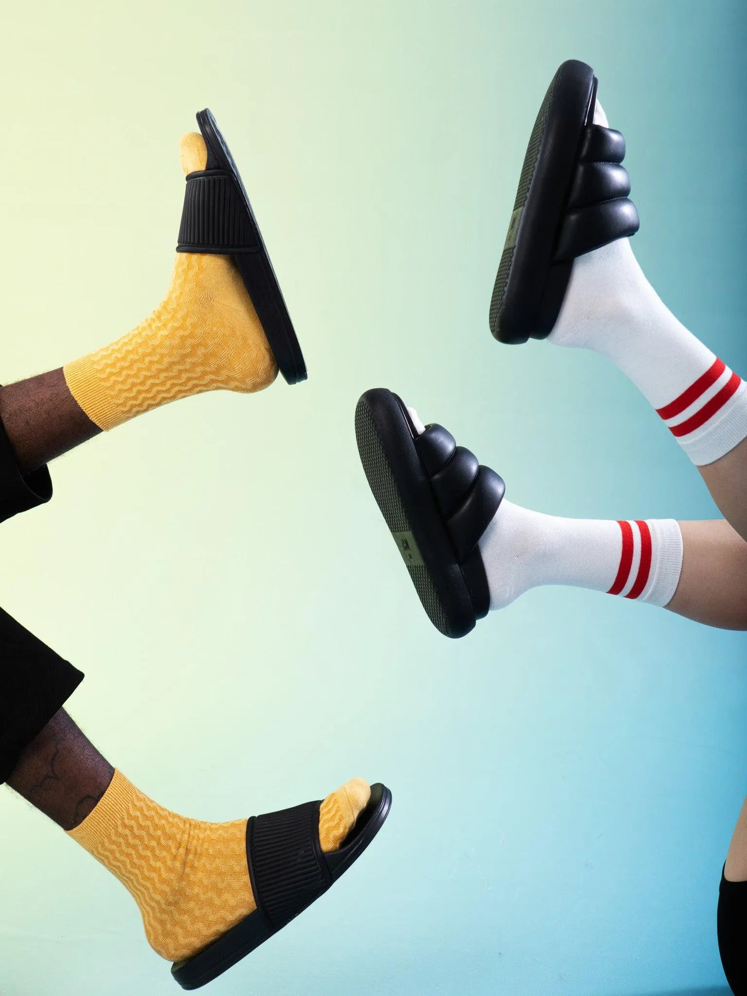 Wir alle würden gerne auf einer Terrasse in Paris sitzen, ein Croissant essen und auf den Eiffelturm blicken… aber wir können nicht, also präsentieren wir Ihnen stattdessen die Bon Croissant-Socken! Sie sind nicht wie Paris, aber sie halten Ihre Füße warm und stilvoll.