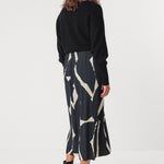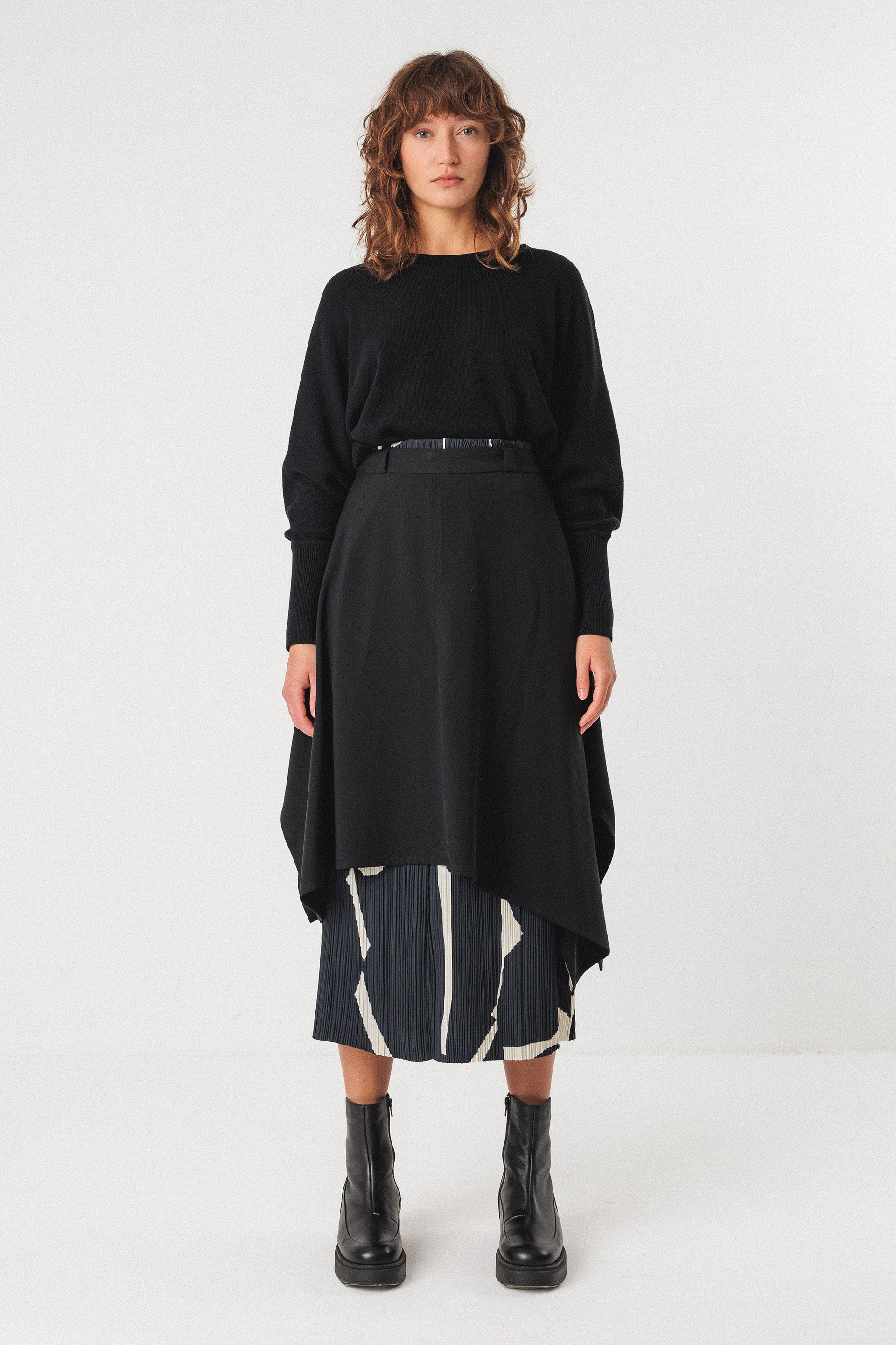 Falda midi acampanada de tejido plisado con la cintura elástica para ponérsela fácilmente.