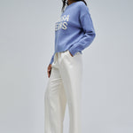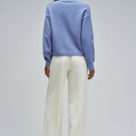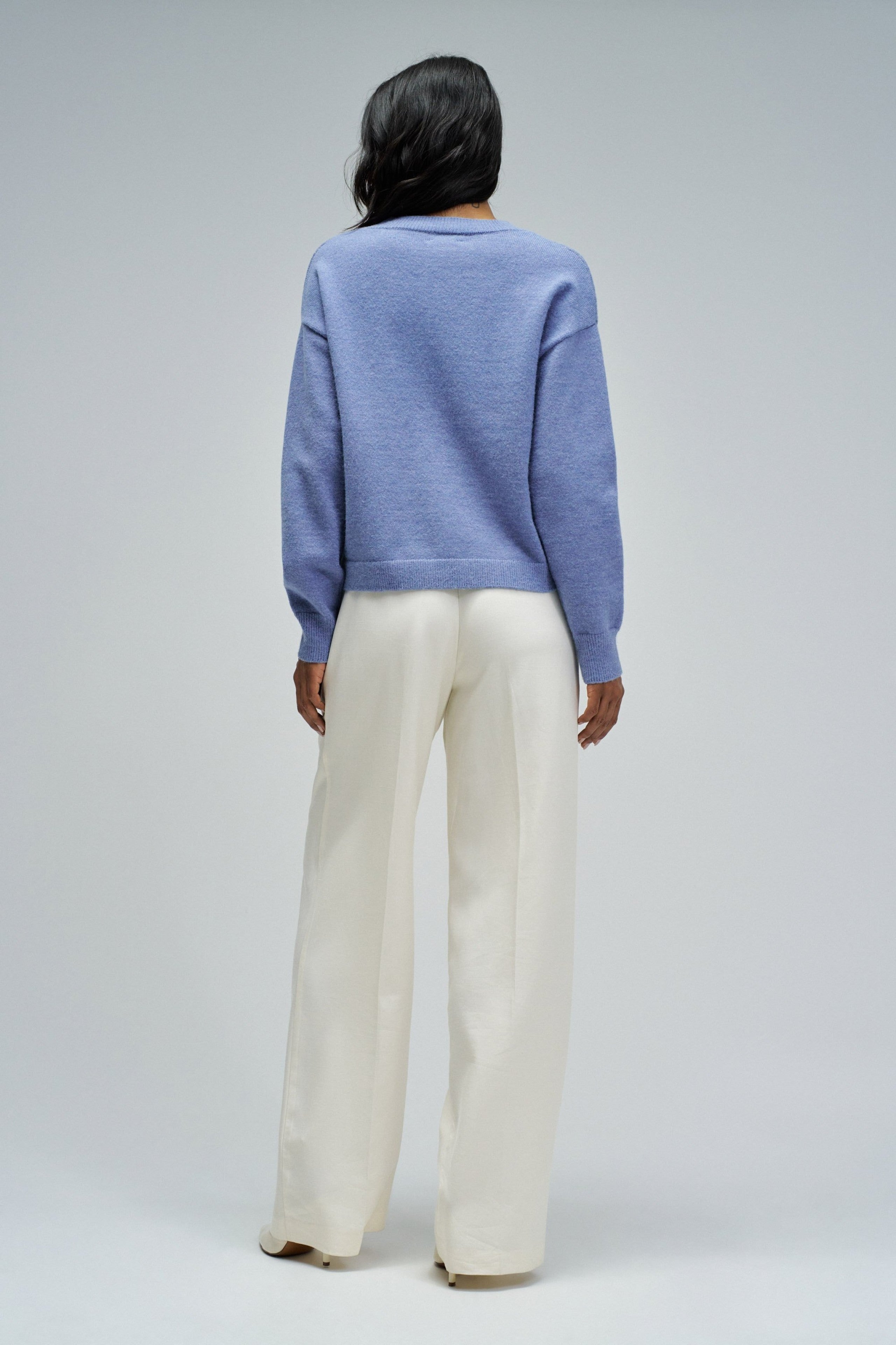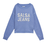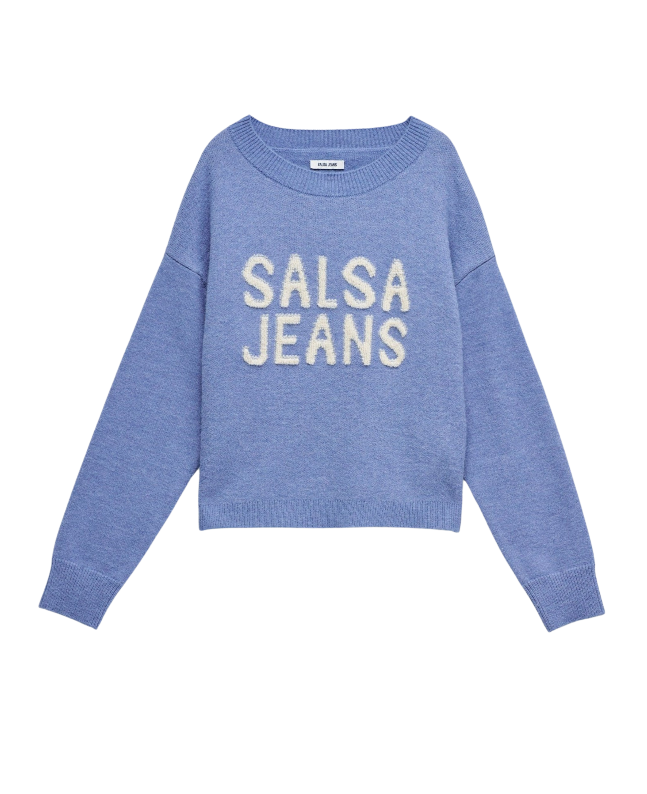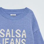 Jersey de punto en azul, un tono delicado e intemporal que aporta suavidad al look. Con corte regular y mangas largas, presenta cuello redondo y acabados acanalados en los puños, cintura y cuello, que realzan la comodidad y el detalle de la prenda. El discreto branding añade un toque moderno y distintivo, haciéndola perfecta para combinaciones versátiles del día a día.