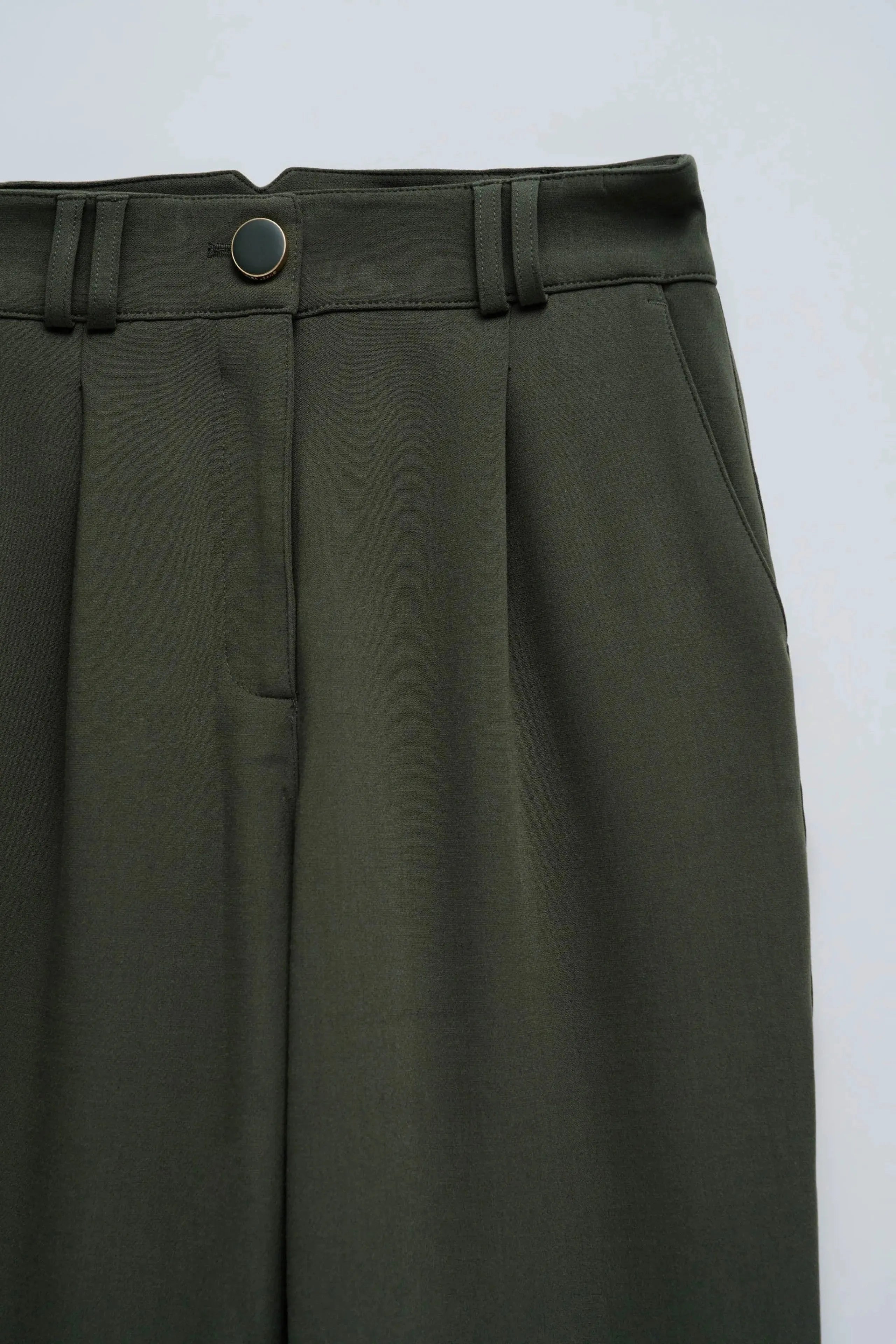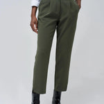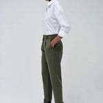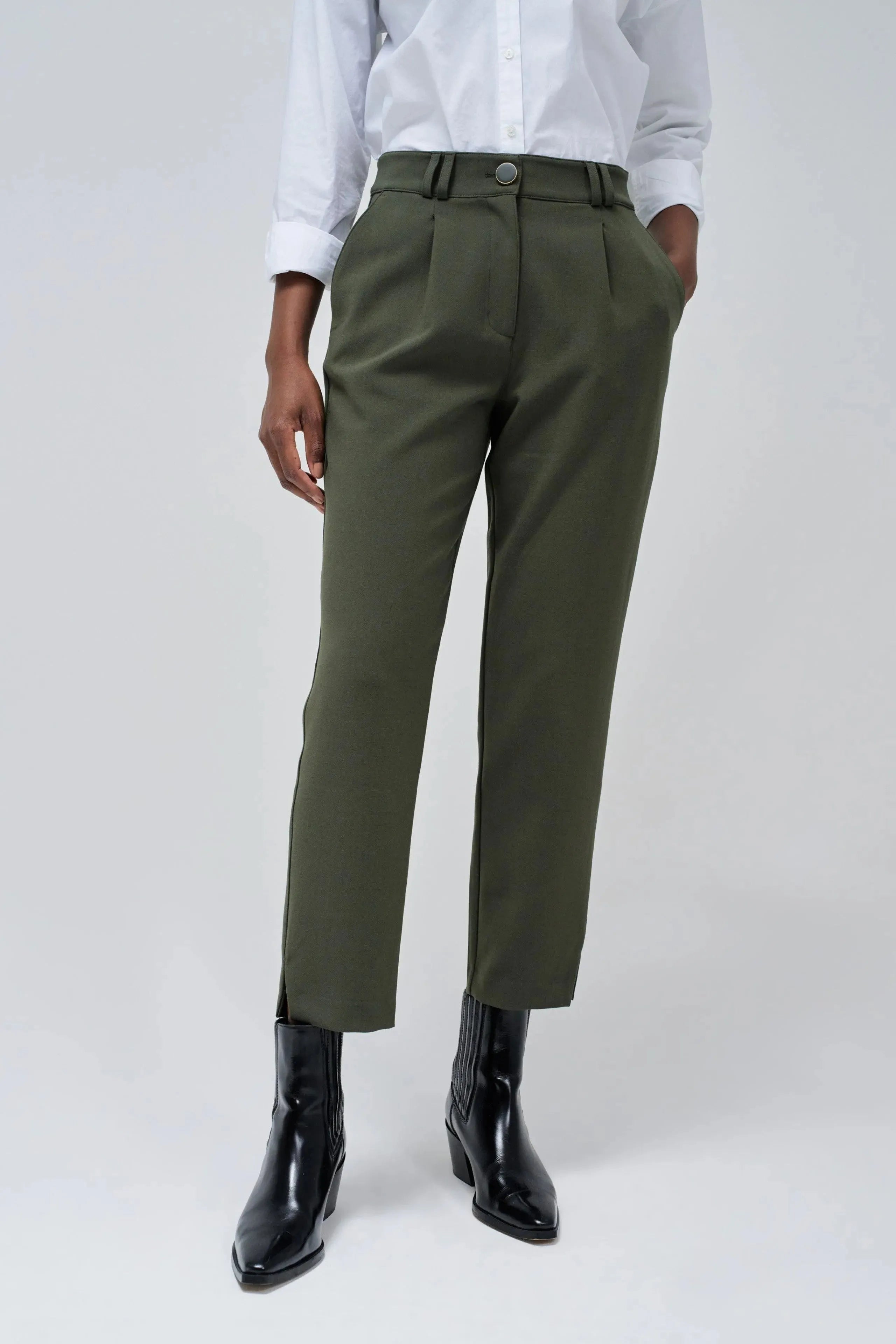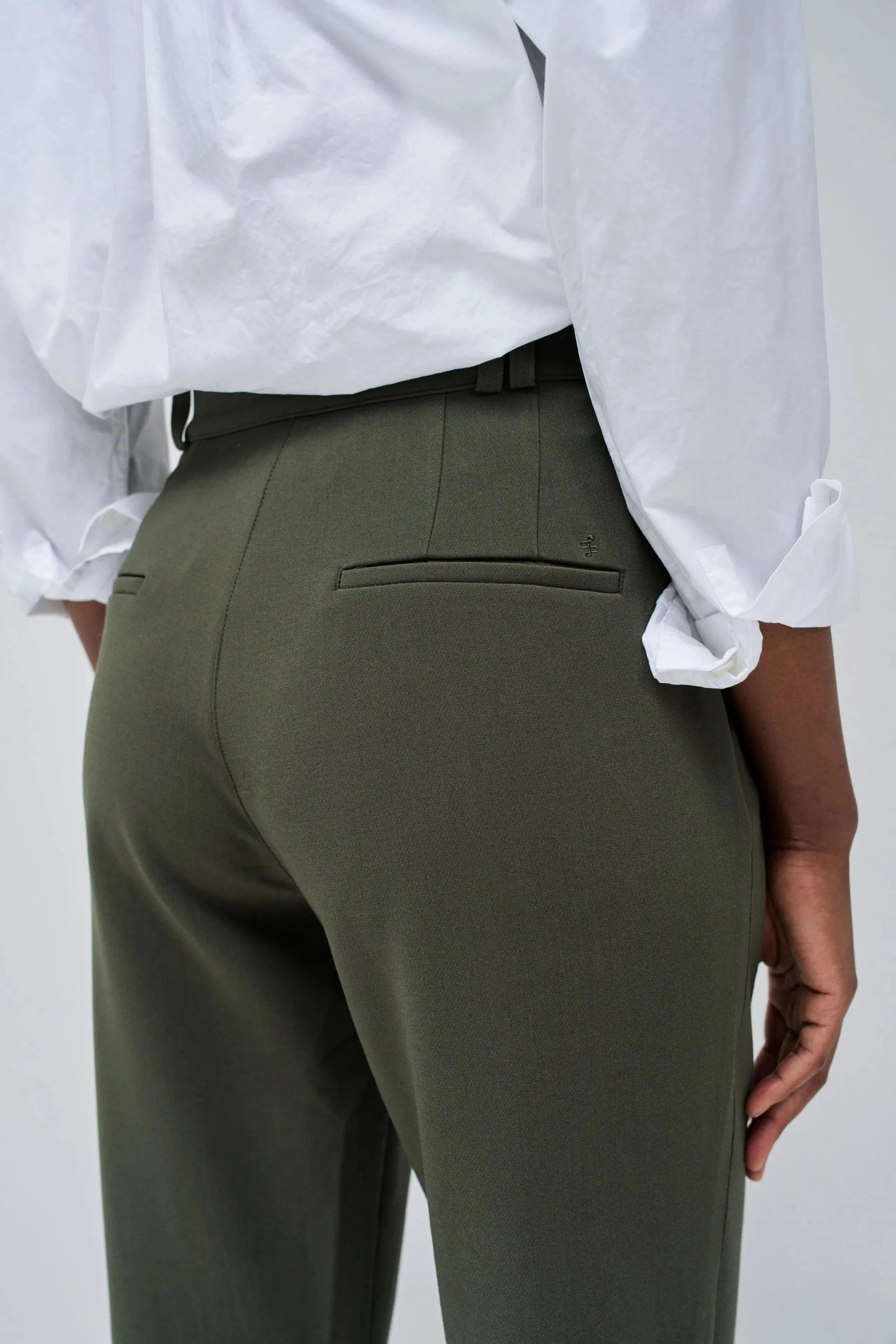 Verleihen Sie Ihrer Garderobe mit dieser grünen Webhose einen modernen Touch. Mit ihrer schmalen Passform und dem schmalen Bein bietet sie eine stilvolle und moderne Passform. Der hohe Bund mit Gürtelschlaufen und der grüne Reißverschluss mit Knopf sorgen für ein elegantes Finish. Zwei Fronttaschen sorgen für zusätzliche Funktionalität und Stil.