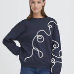 Su estilo destaca por el estampado abstracto en contraste blanco, que aporta un toque moderno y original sin perder la esencia casual. Ideal para combinar con vaqueros, pantalones cargo o faldas midi, es una prenda versátil que se adapta a cualquier ocasión.