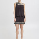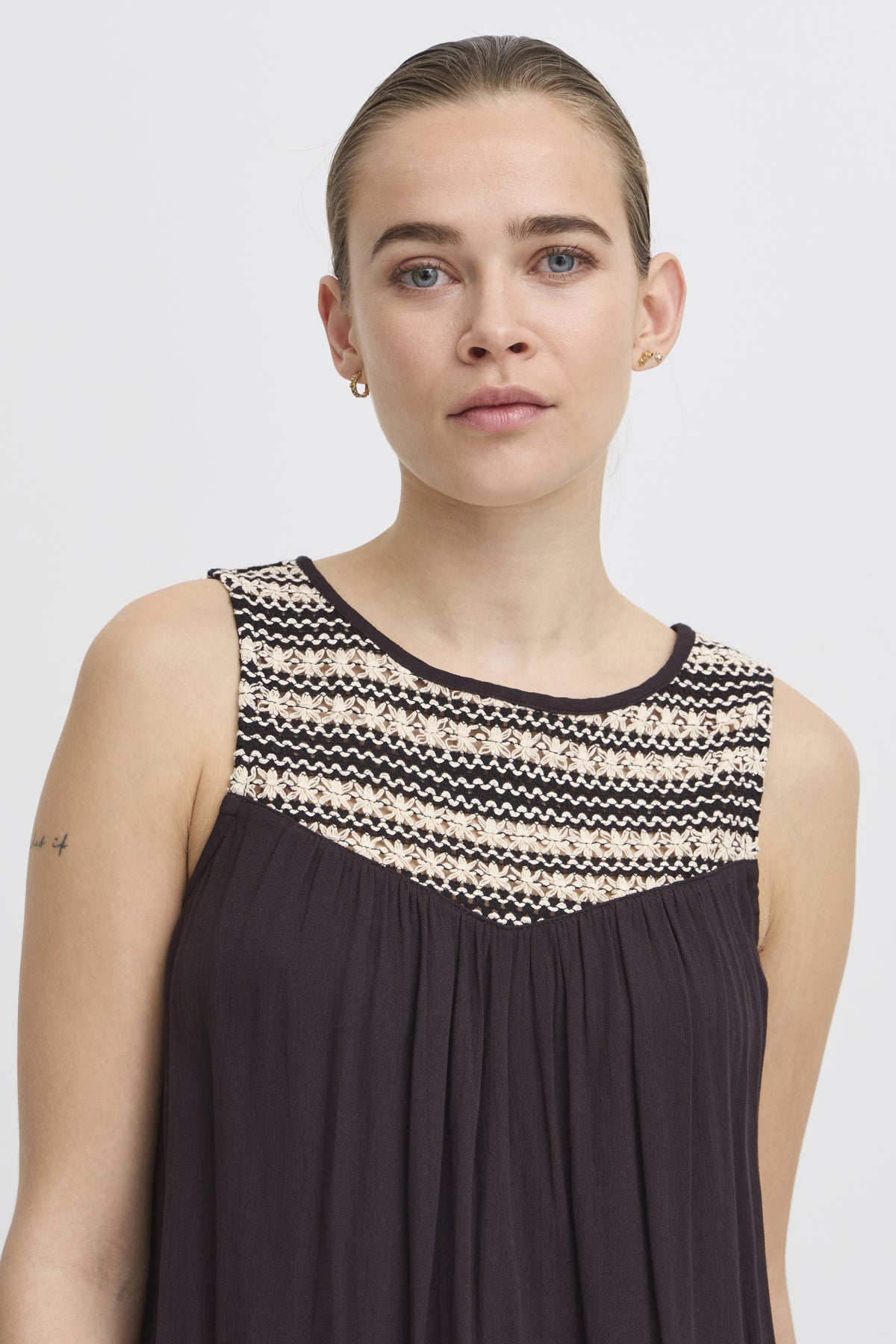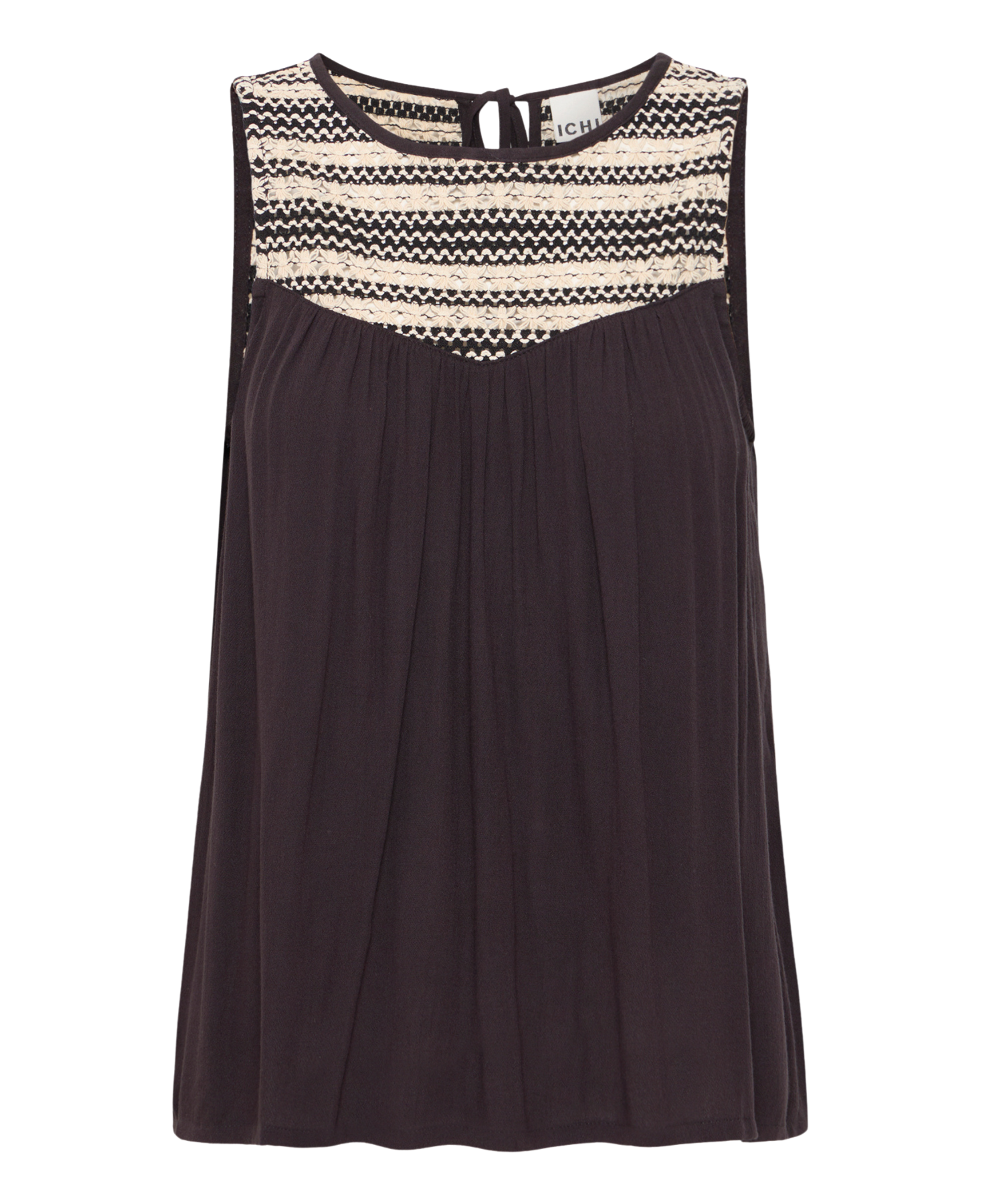 Erleben Sie Komfort und Stil mit dem schwarzen ICHI Ragni Top. Hergestellt aus 100 % Viskose (LENZING™ ECOVERO™), hat dieses Top eine A-Linien-Passform und eine normale Länge und sorgt so für eine schlanke Silhouette ohne Bewegungseinschränkung. Das ärmellose Design hält Sie den ganzen Tag über kühl.