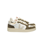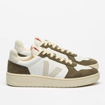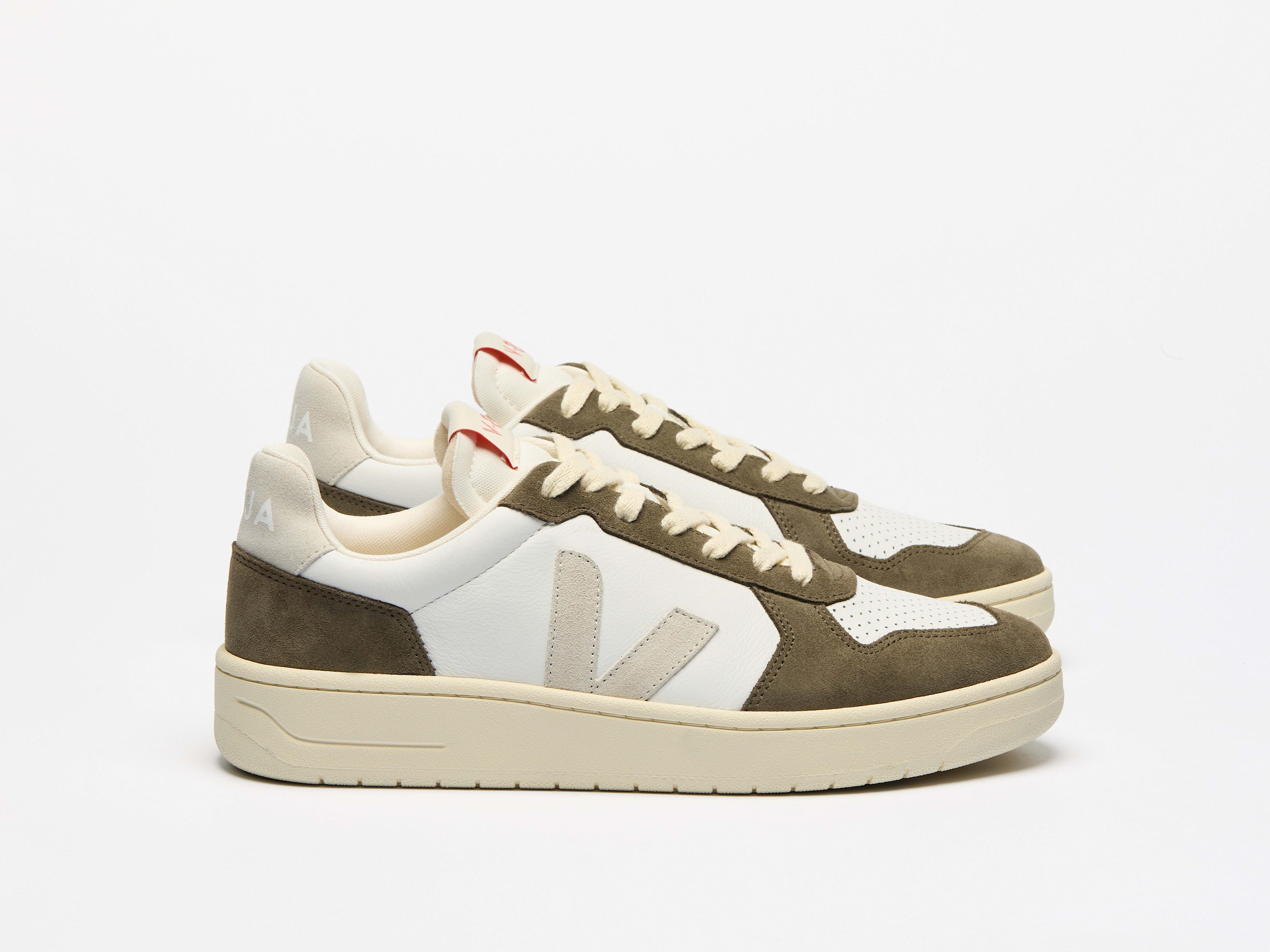 VEJA V-82 Leder-Sneaker in Weiß und Natur-Khaki