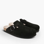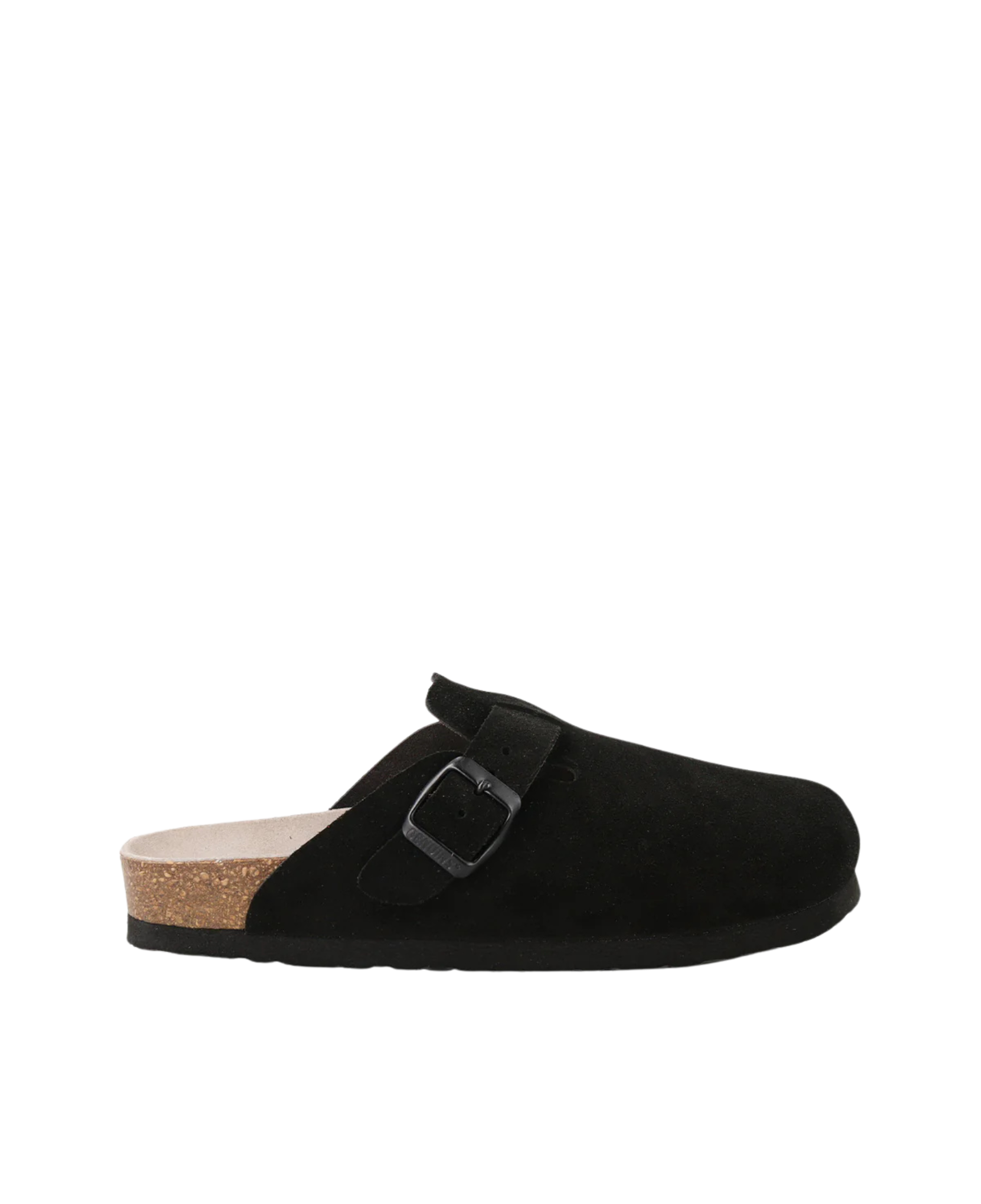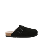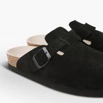 Schwarzer Clog aus geöltem Leder mit zeitlosem Vintage-Finish. Die anatomische Innensohle aus Kork und Schaumstoff passt sich der Fußform an und bietet maximalen Komfort und Schutz bei jedem Schritt. Die verstellbare Schnalle sorgt für einen sicheren, individuellen Sitz.