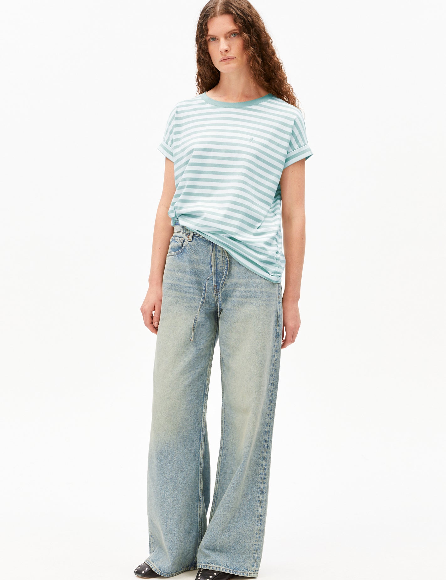 Camiseta ARMEDANGELS Idaara Stripes White / Foam