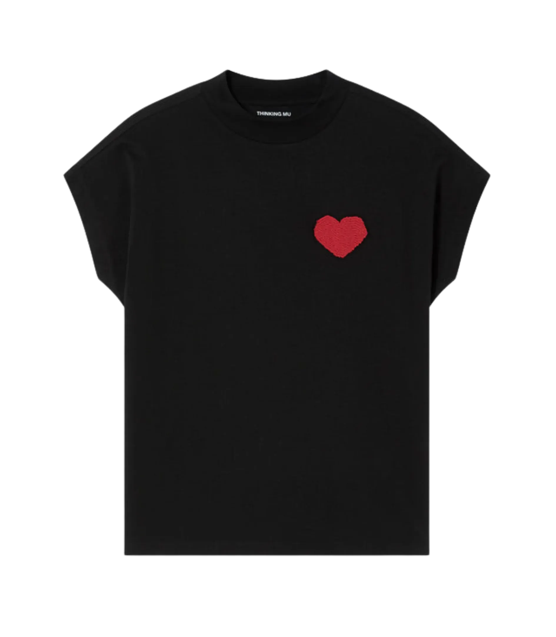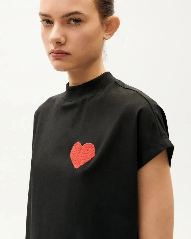 Schwarzes Volta-T-Shirt mit Herz aus Bio-Baumwolle