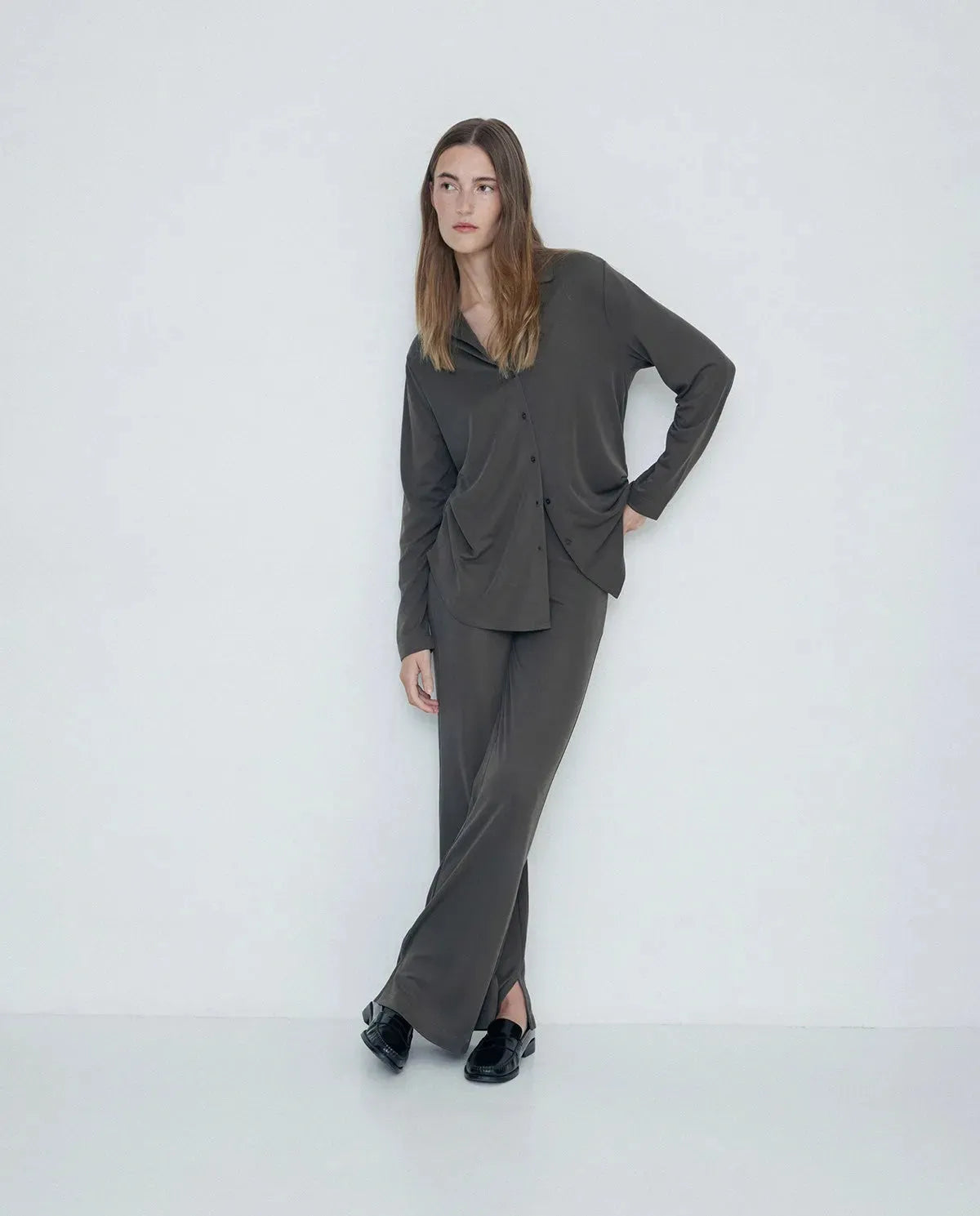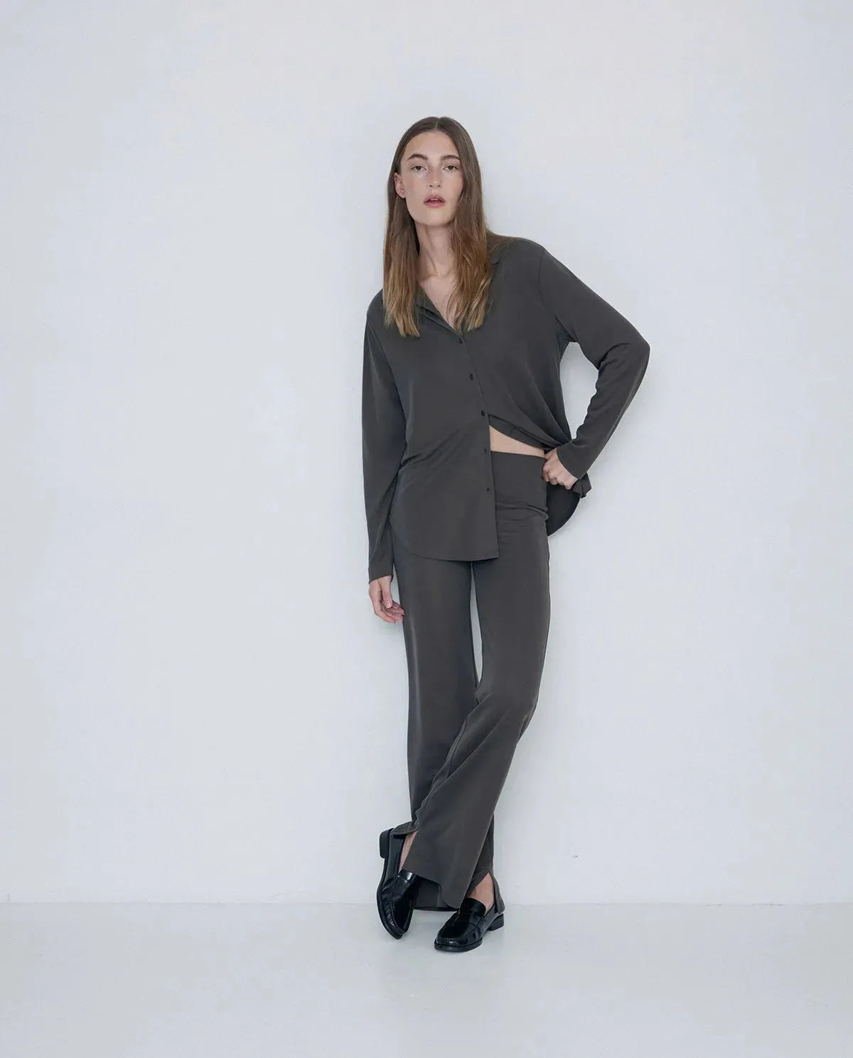 Er modal Es ist hoch atmungsaktiv und feuchtigkeitsregulierend. Es ist ein feiner, seidiger Stoff, der schön fällt und sich hervorragend anpasst.
