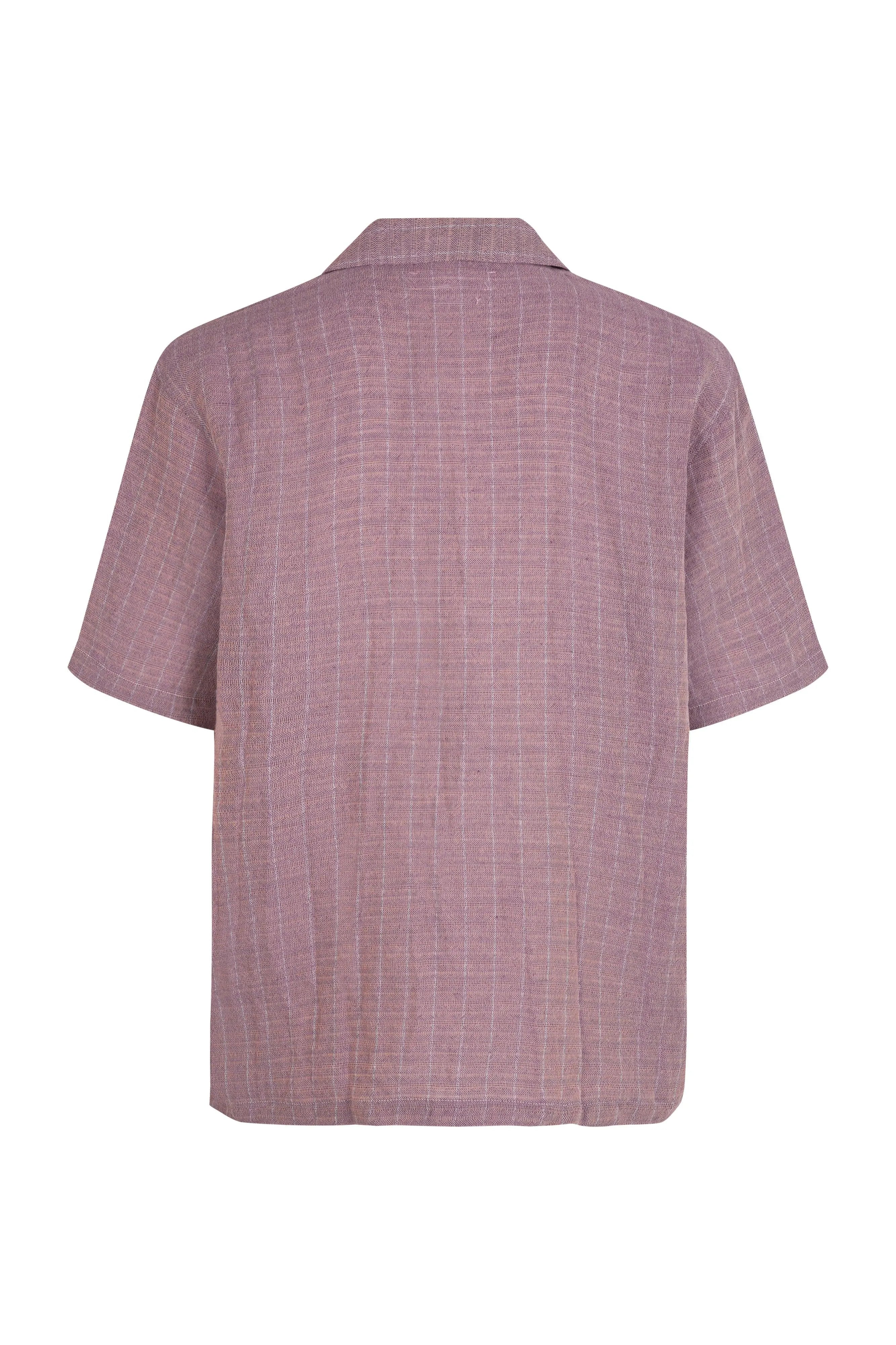 Kurzärmliges, gerade geschnittenes Hemd. Knopfverschluss vorne. Gewebte Quadrate. In Italien gewebtes Hauptmaterial aus einer Mischung mit Leinen und Baumwolle.