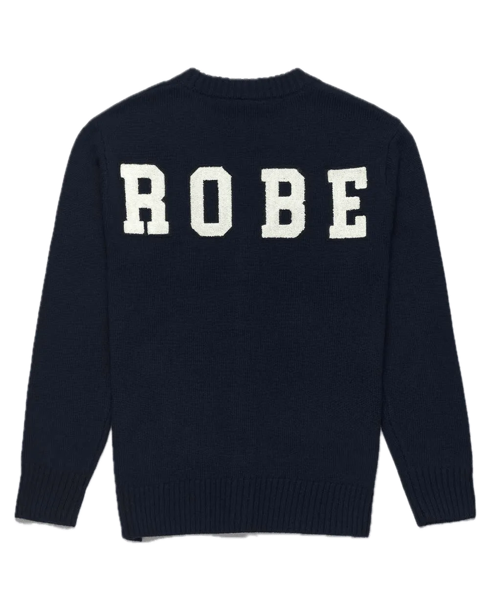Marineblaue Strickjacke oder Strickjacke mit Aufnähern.