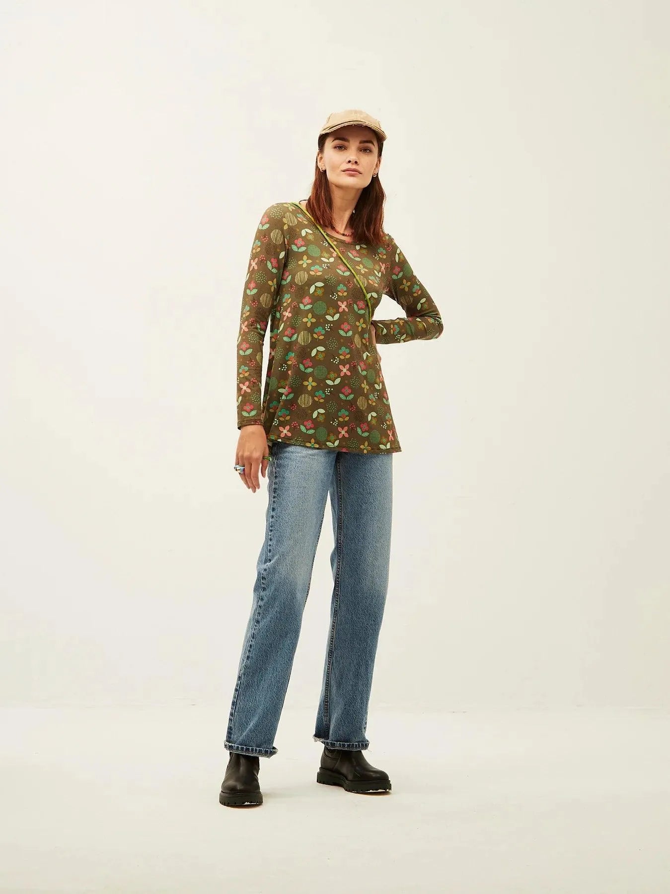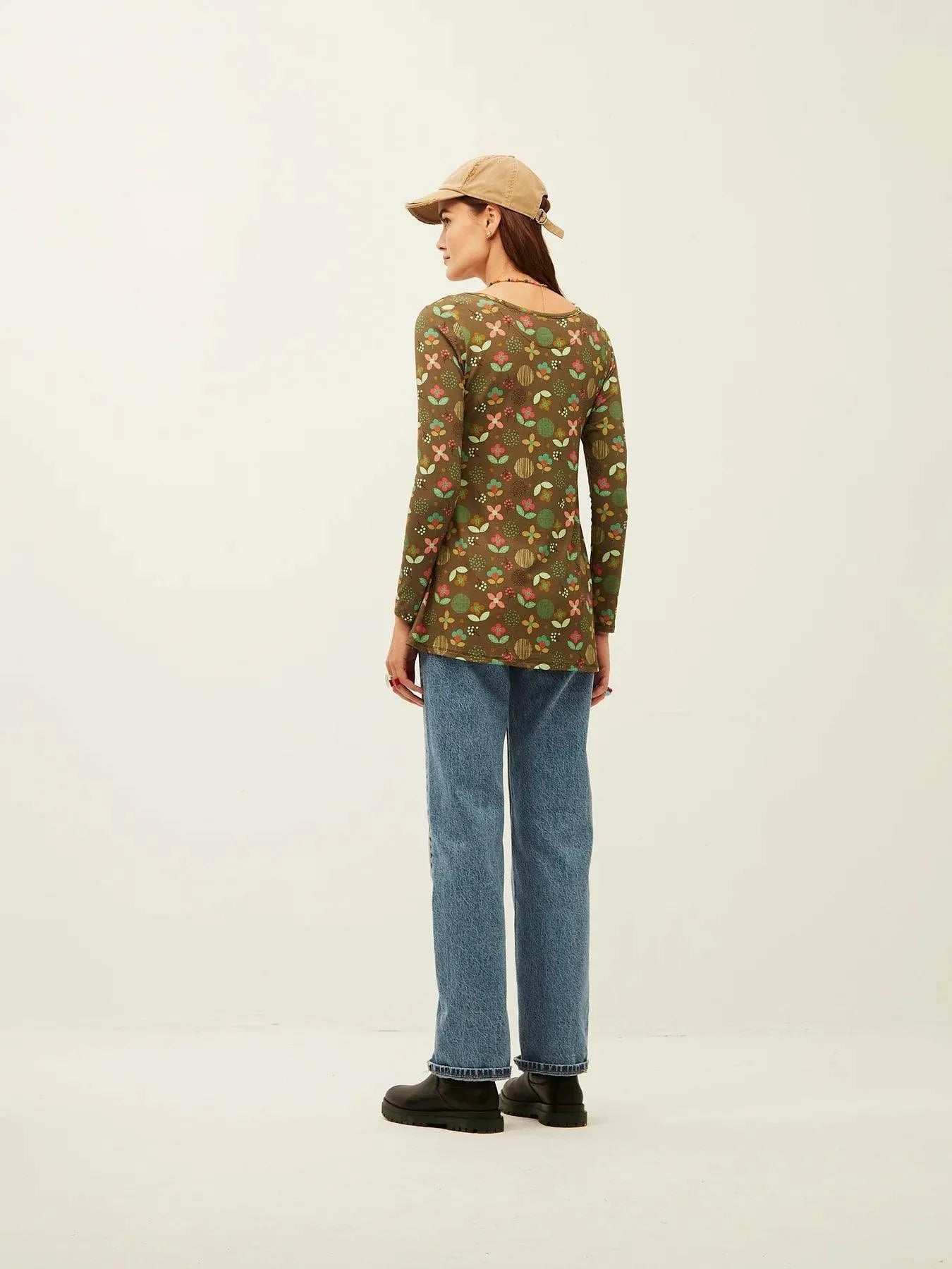 Langärmliges T-Shirt mit Green Flower Garden-Print.