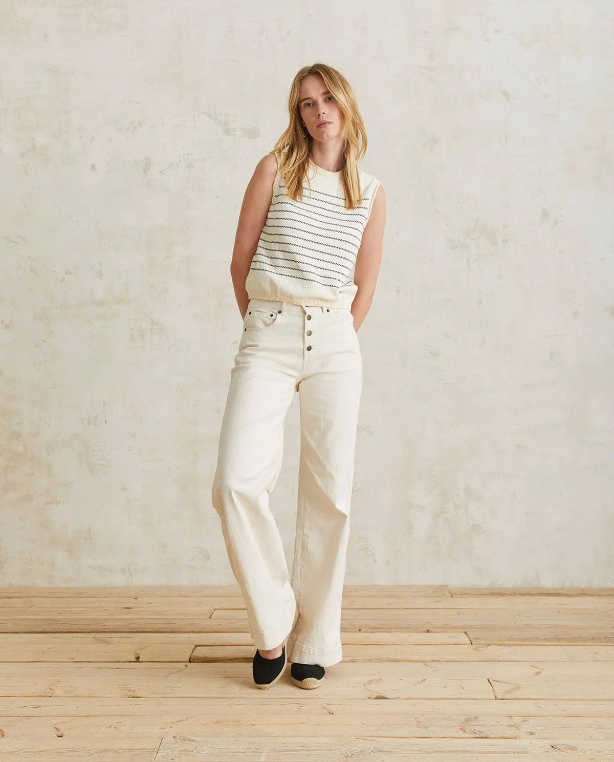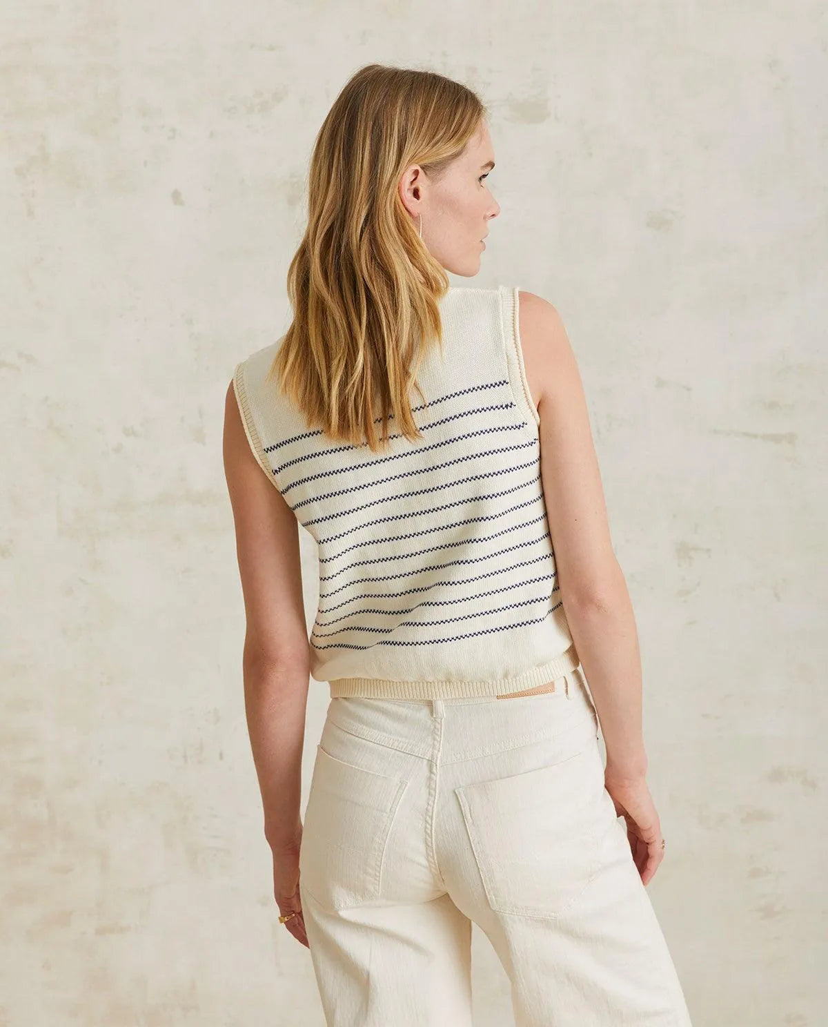 Chaleco Yerse Rayas Ecru Navy - ECRU