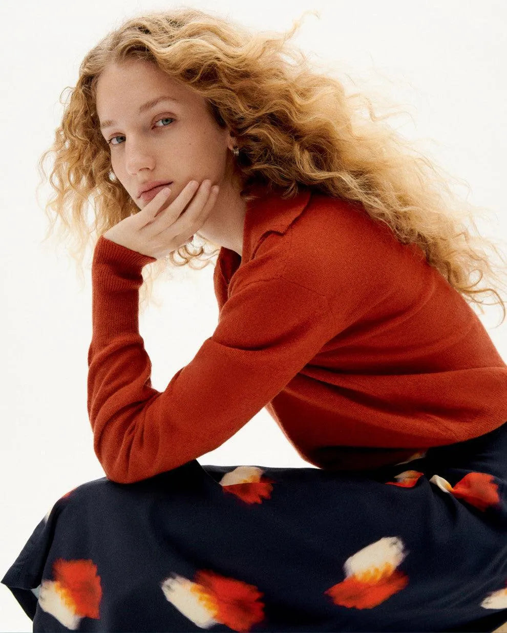 Ausgestellter Midi-Rock mit Webkanten und unsichtbarem Reißverschluss in der hinteren Mitte. Hergestellt aus 100 % Ecovero. Zusammenarbeit mit der Künstlerin Paula Codoñer.