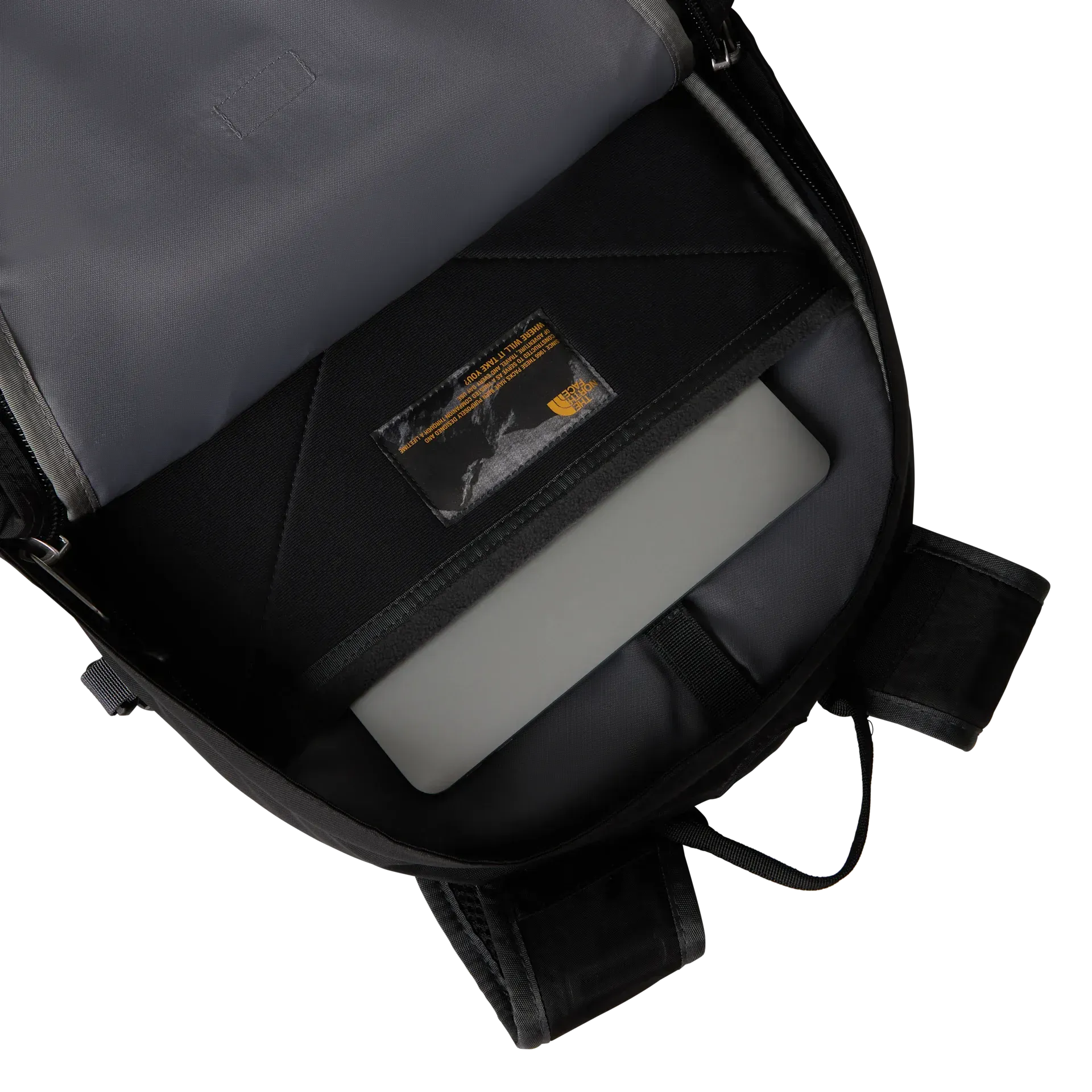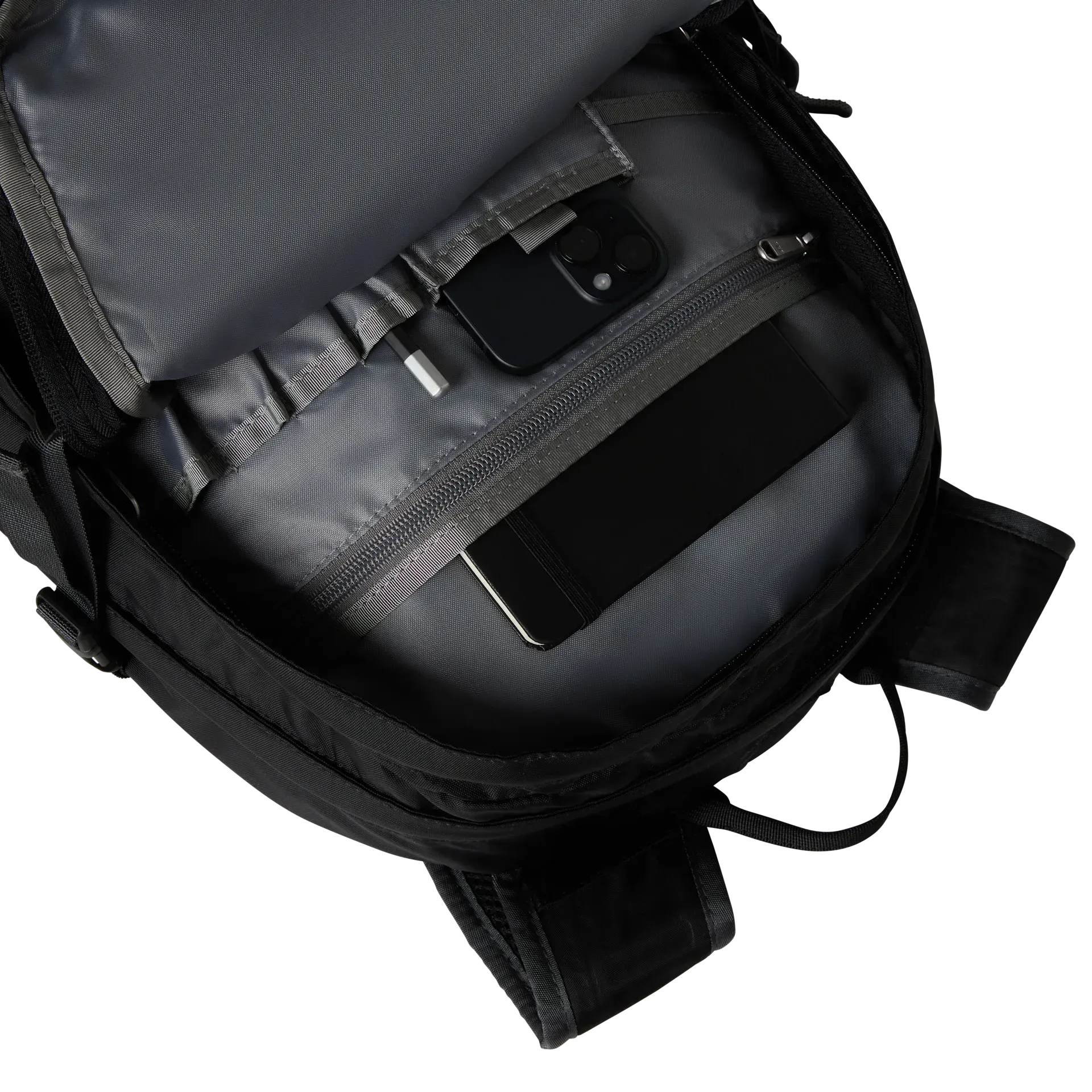 Großes Hauptfach mit Organisationstaschen im Inneren, einem 15-Zoll-Laptopfach und einem Anschluss für ein Trinksystem