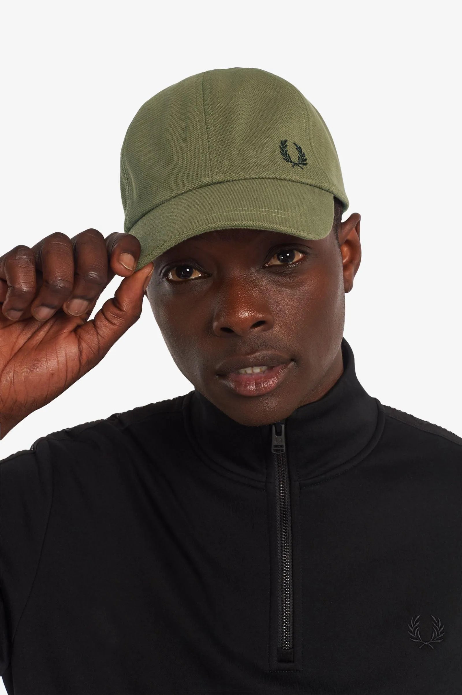 Unsere klassische Baumwollmütze aus demselben Piqué-Strick und in denselben Farben wie das Poloshirt von Fred Perry.