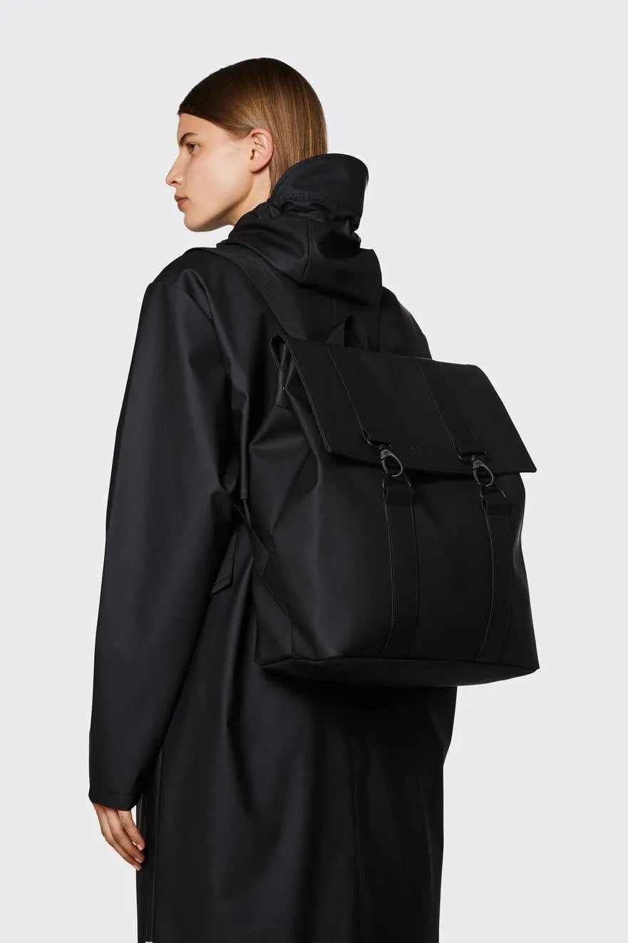 Die MSN-Tasche besteht aus dem exklusiven wasserdichten PU-Gewebe von Rains, das auf Stärke, Haltbarkeit und ein weiches Tragegefühl ausgelegt ist.