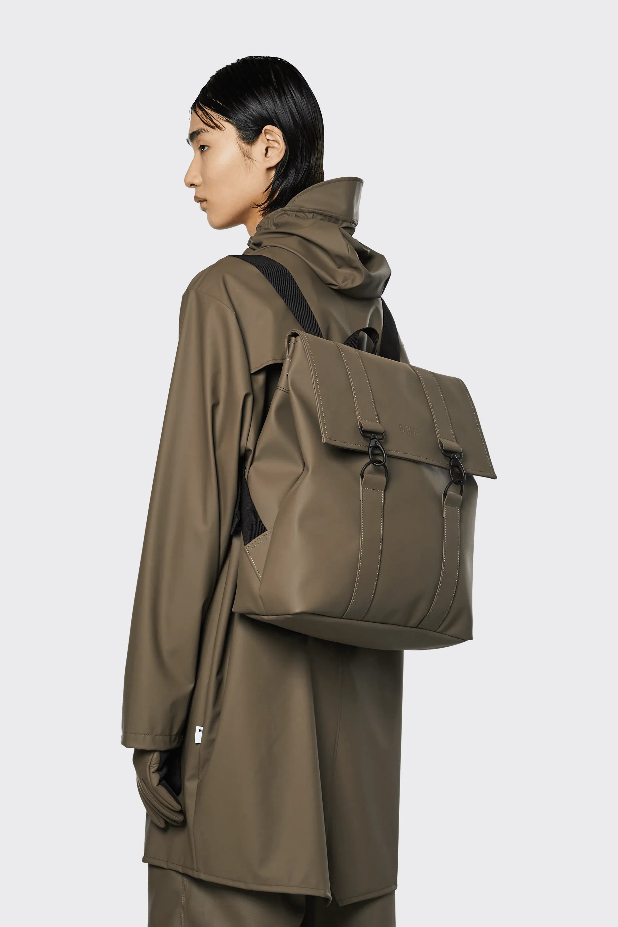 Die MSN-Tasche besteht aus dem exklusiven wasserdichten PU-Gewebe von Rains, das auf Stärke, Haltbarkeit und ein weiches Tragegefühl ausgelegt ist.
