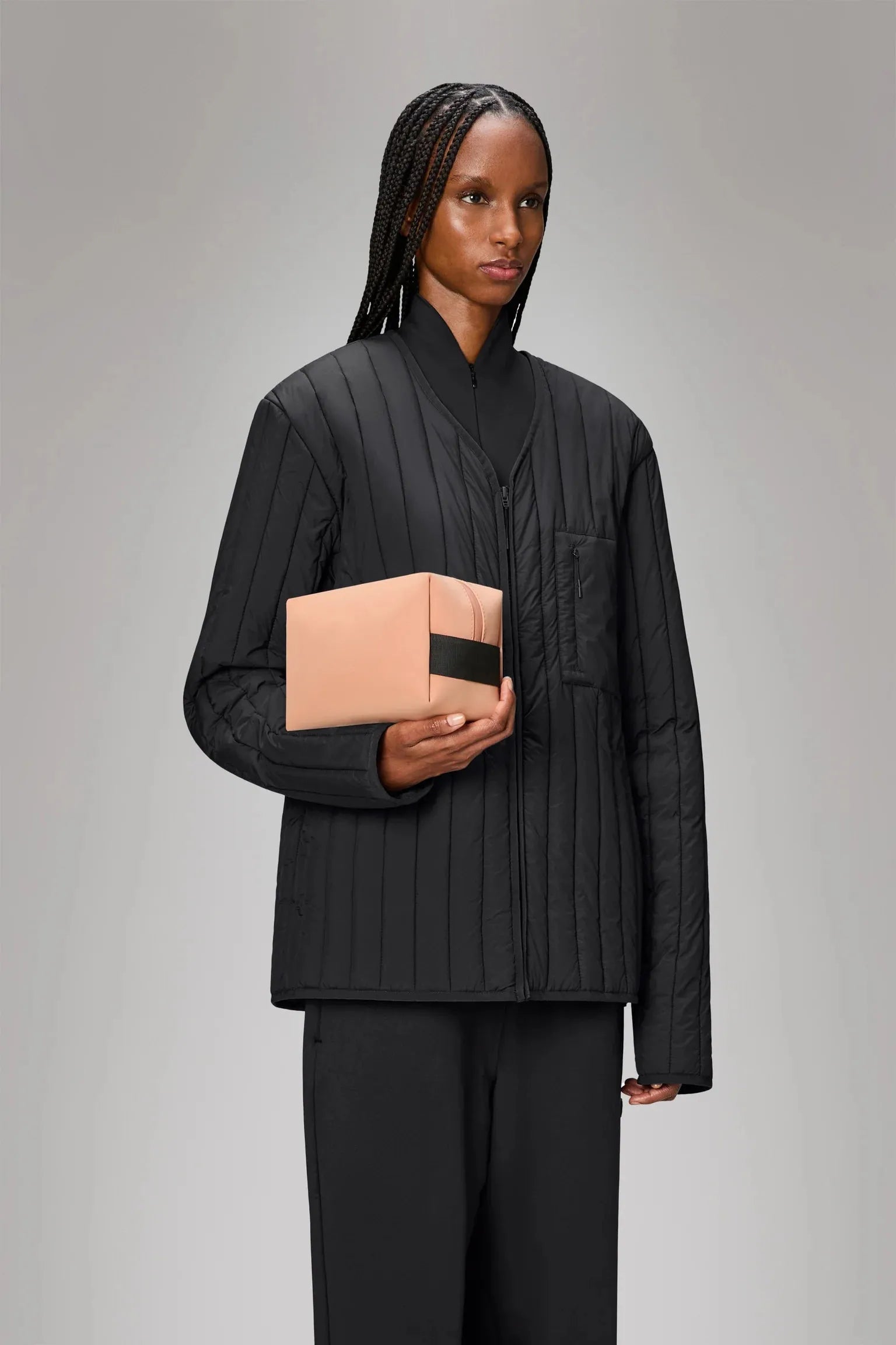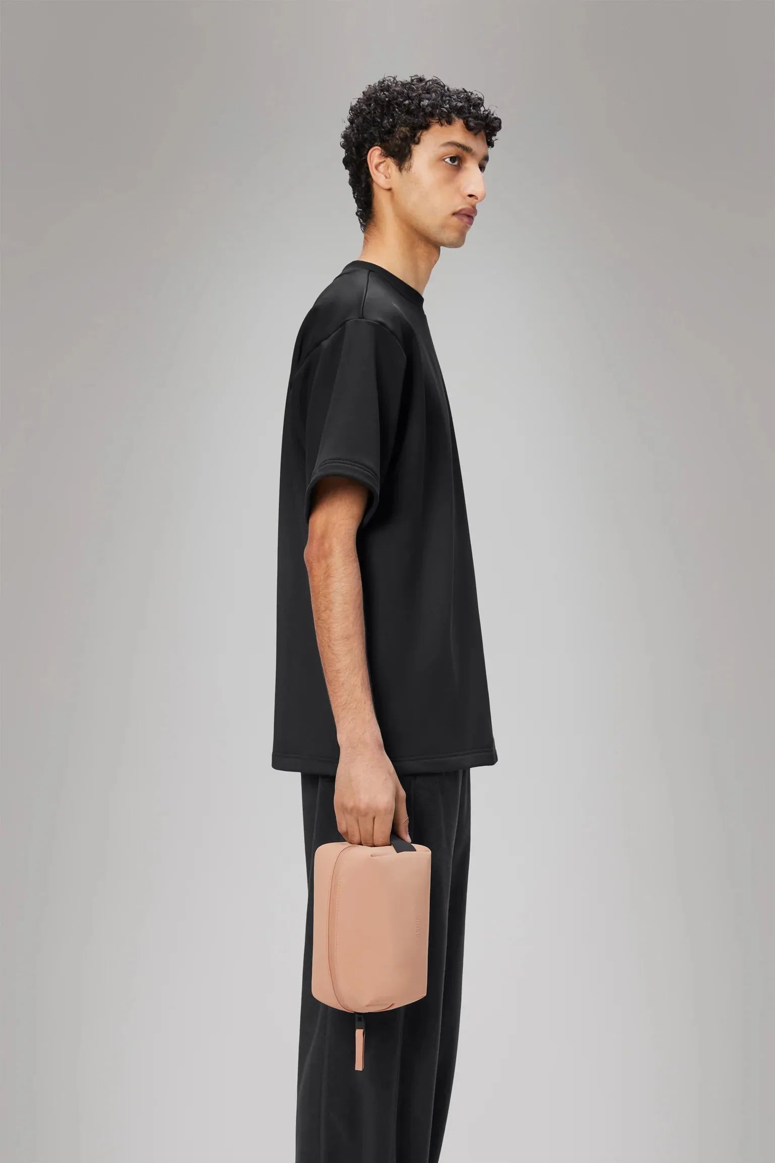 Der kleine Kulturbeutel besteht aus dem charakteristischen wasserdichten PU-Gewebe von Rains und bietet Robustheit beim Transport, Haltbarkeit und eine glatte Oberfläche.