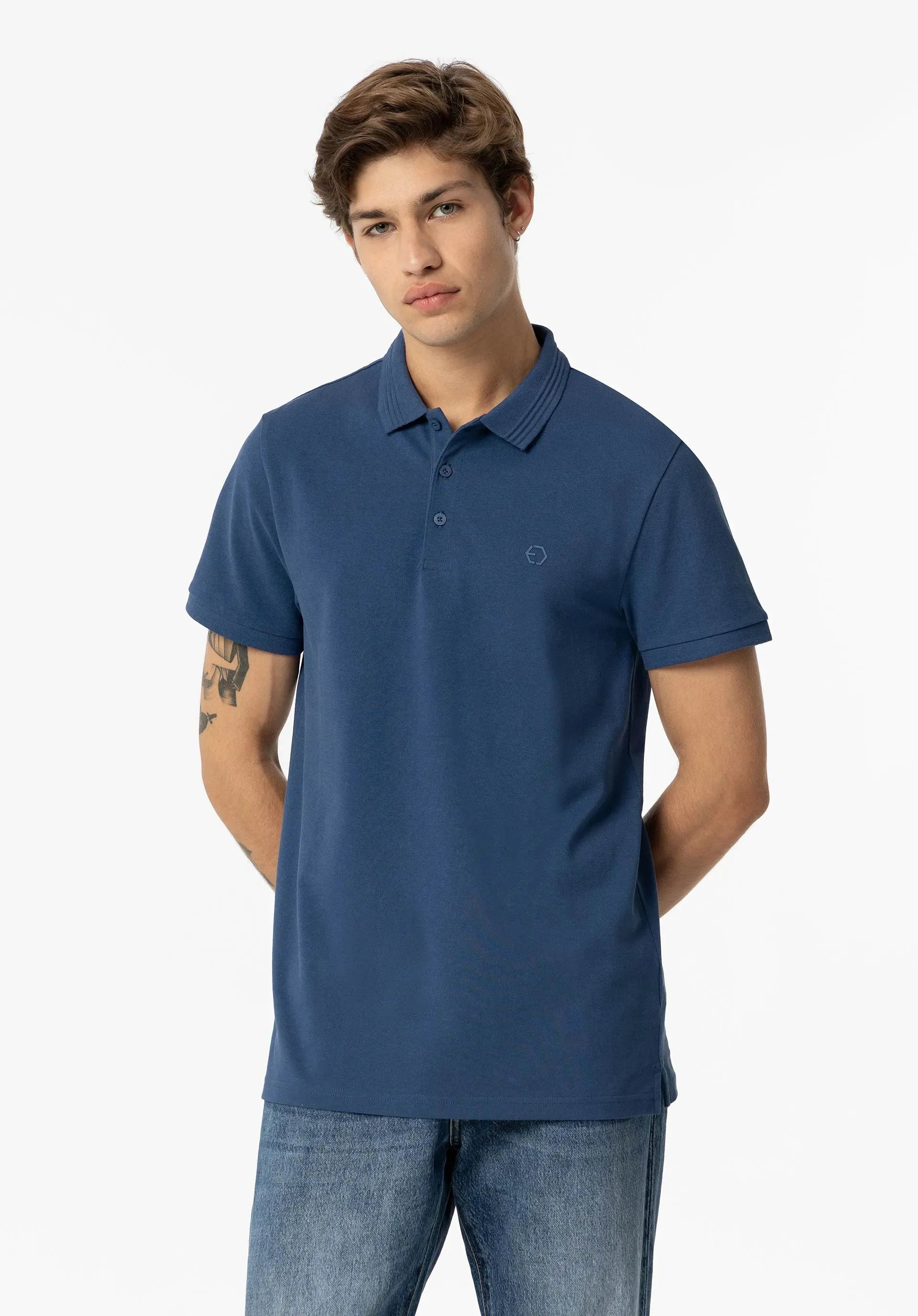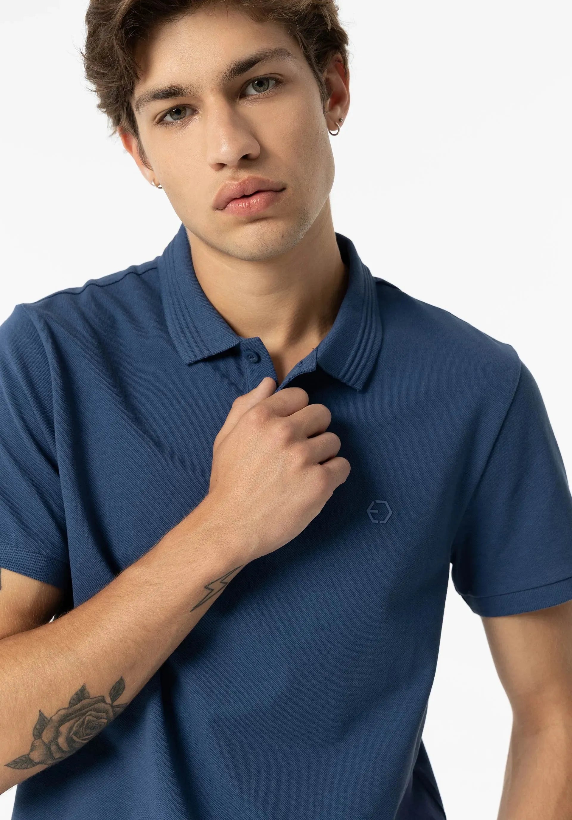 Poloshirt mit Reverskragen mit geprägtem Streifeneffekt und kurzen Ärmeln. Knopfverschluss vorne. Saum mit Seitenschlitzen. Geprägtes Druckdetail.
