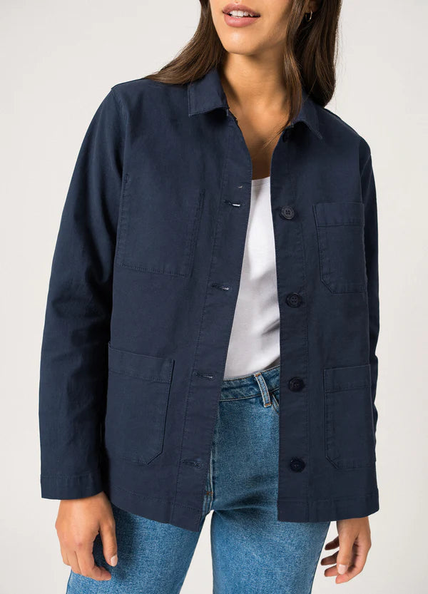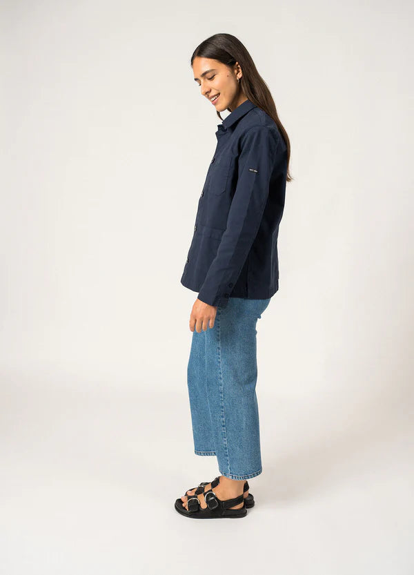 Inspiriert von unserem legendären Sirocco versprüht die Alizé Worker Jacket mit ihren aufgesetzten Taschen und der geraden Passform den Charme von Workwear. Gefertigt aus einem Baumwoll-Elasthan-Mix, behält sie ihre Elastizität und ist somit ein authentisches, stylisches und bequemes Workwear-inspiriertes Kleidungsstück. - Jacke