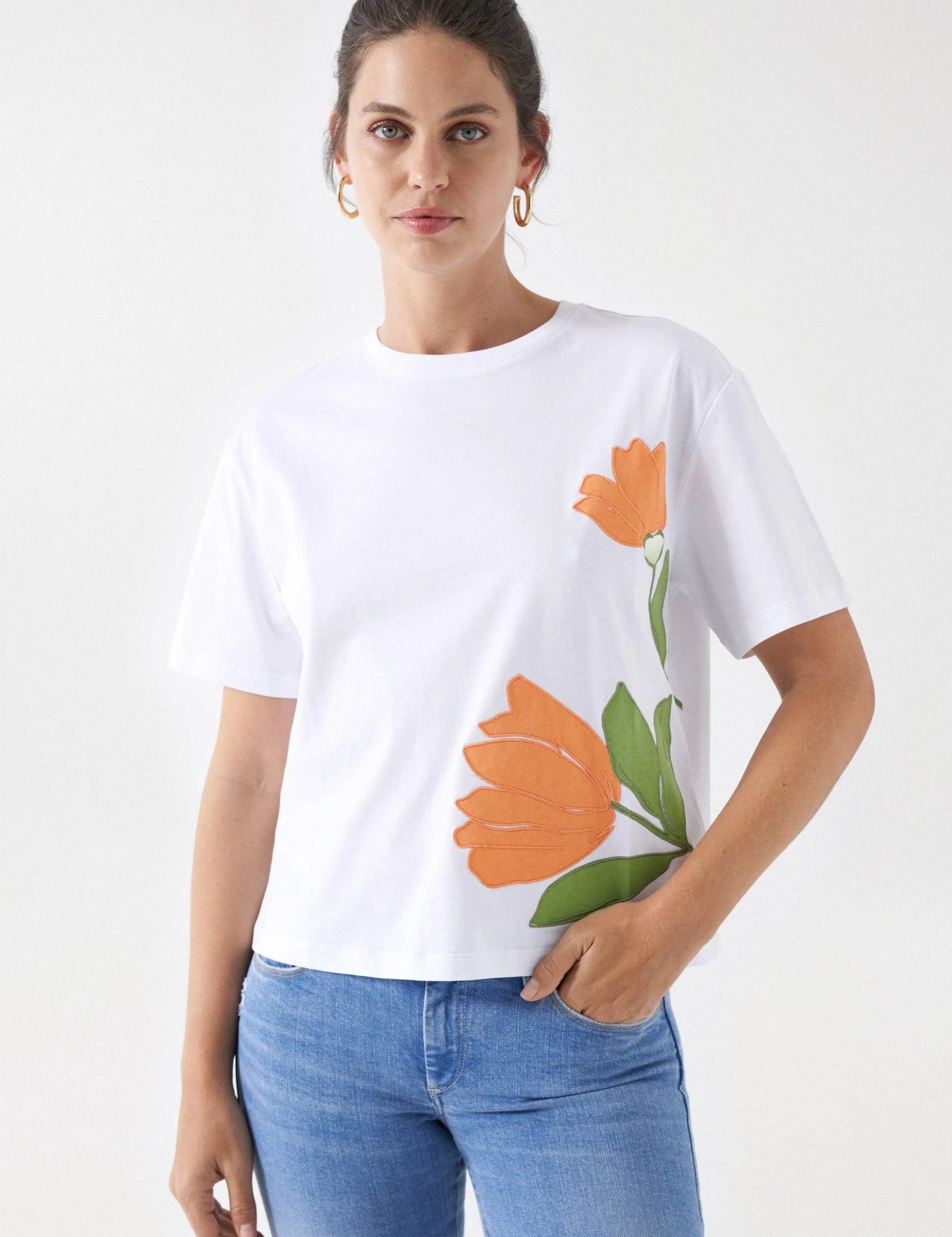 SALSA JEANS Sweatshirt mit Blumenstickerei und hellen Perlen