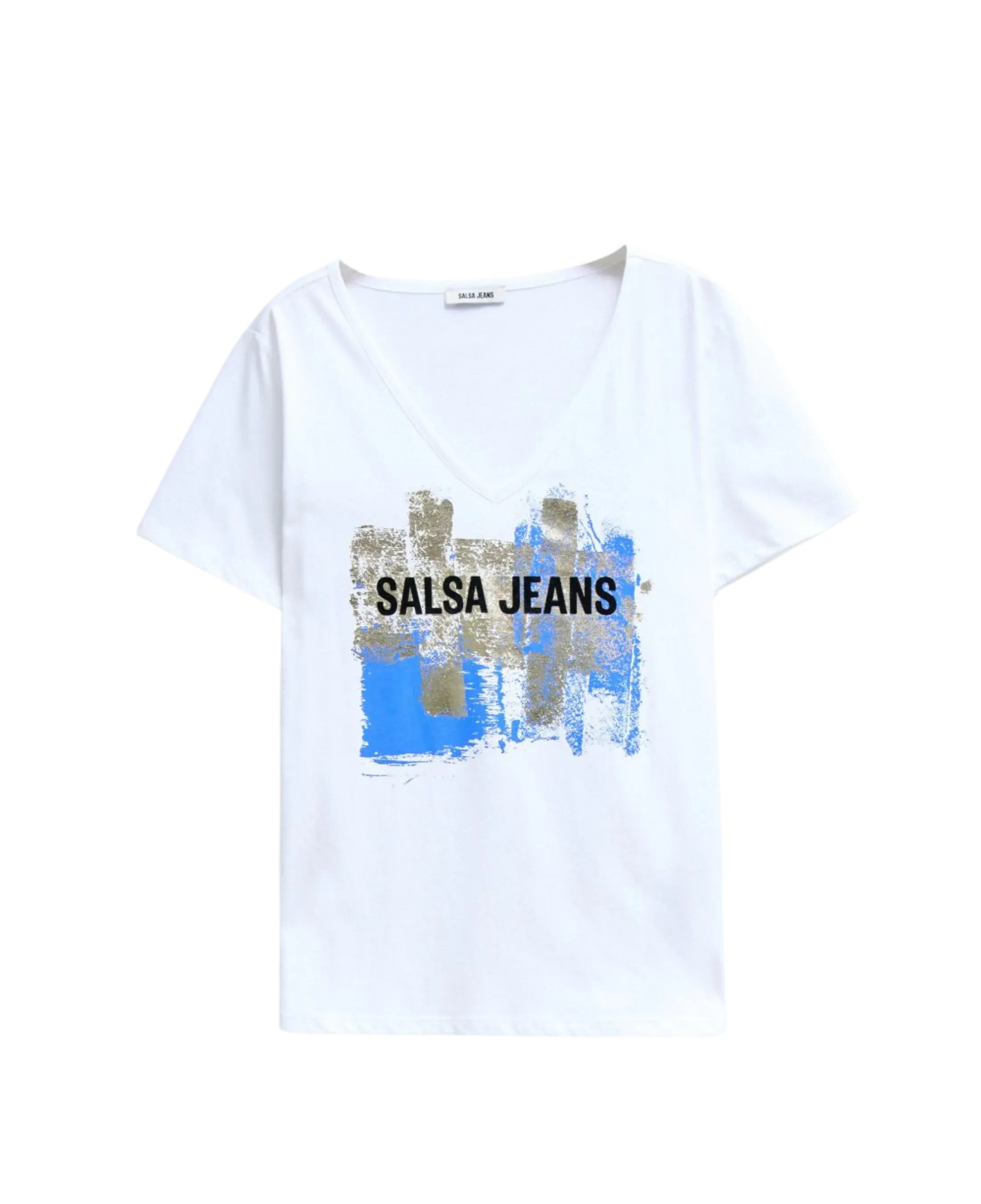 SALSA JEANS T-Shirt mit hellen Perlenpailletten