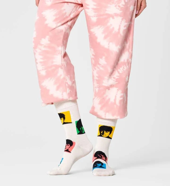 Erklären Sie auf Ihren Socken Ihre Liebe zu den legendären Musikgenies: den Beatles! Dieses neue Modell zeigt die Silhouetten der Bandmitglieder auf einem leuchtend gelben Hintergrund. Limitierte Auflage der Happy Socks x The Beatles-Kollektion. Aus gekämmter Bio-Baumwolle.