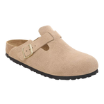 Das Modell BIRKENSTOCK Boston ist ein echter Klassiker, der das ganze Jahr über problemlos getragen werden kann. Mit seinem raffinierten, individuell anpassbaren Design genießt der Boston Clog längst Legendenstatus. Dieses Modell verfügt über ein ganz besonderes Detail: Die Träger haben einen geflochtenen Aufdruck, der perfekt zur modernen Bohème-Ästhetik passt. Das Obermaterial besteht aus besonders weichem Wildleder, das sich wie angegossen an den Fuß anpasst.