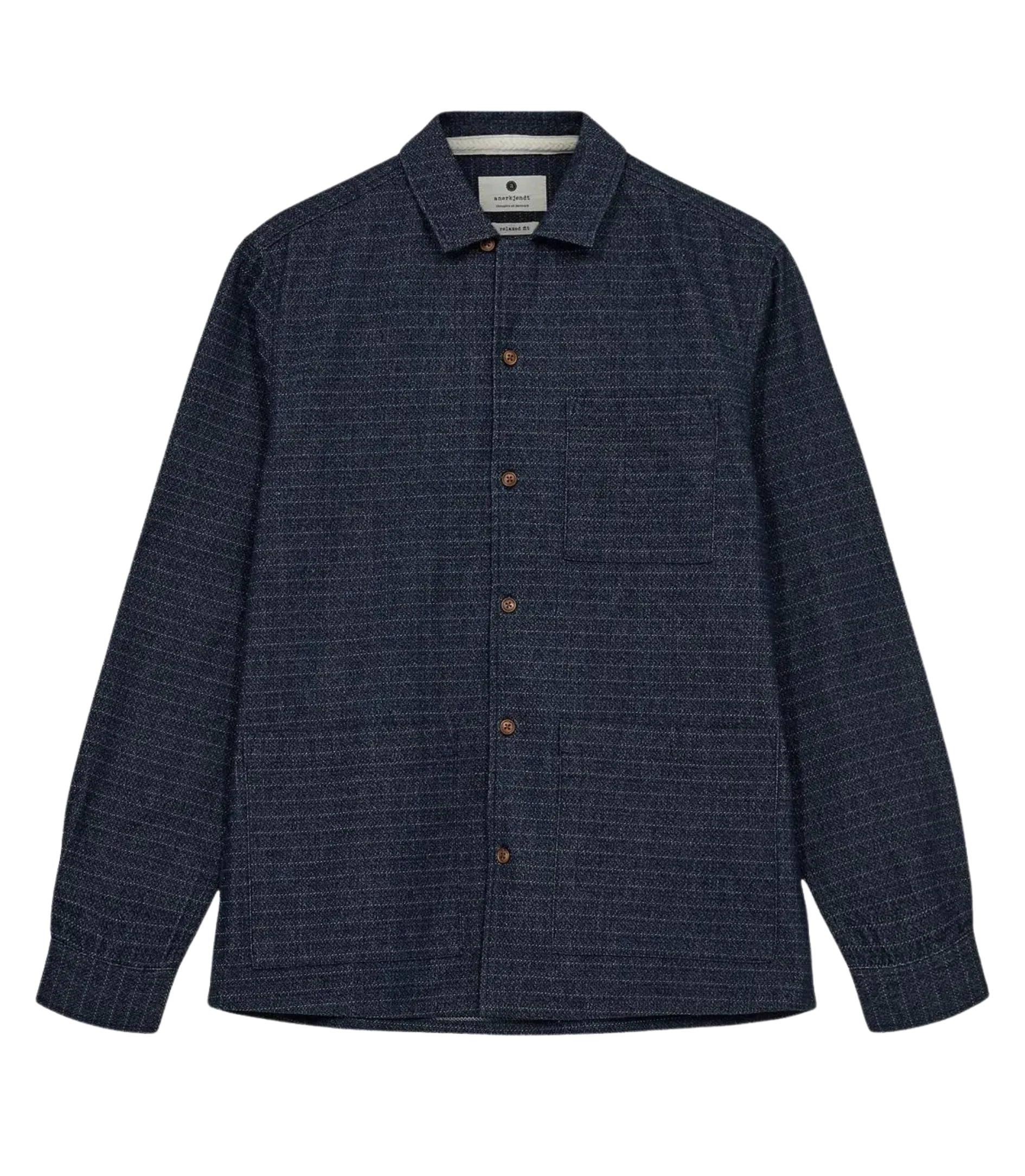 ANERKJENDT Akkurt Denim-Jacquardhemd Mittelblauer Denim