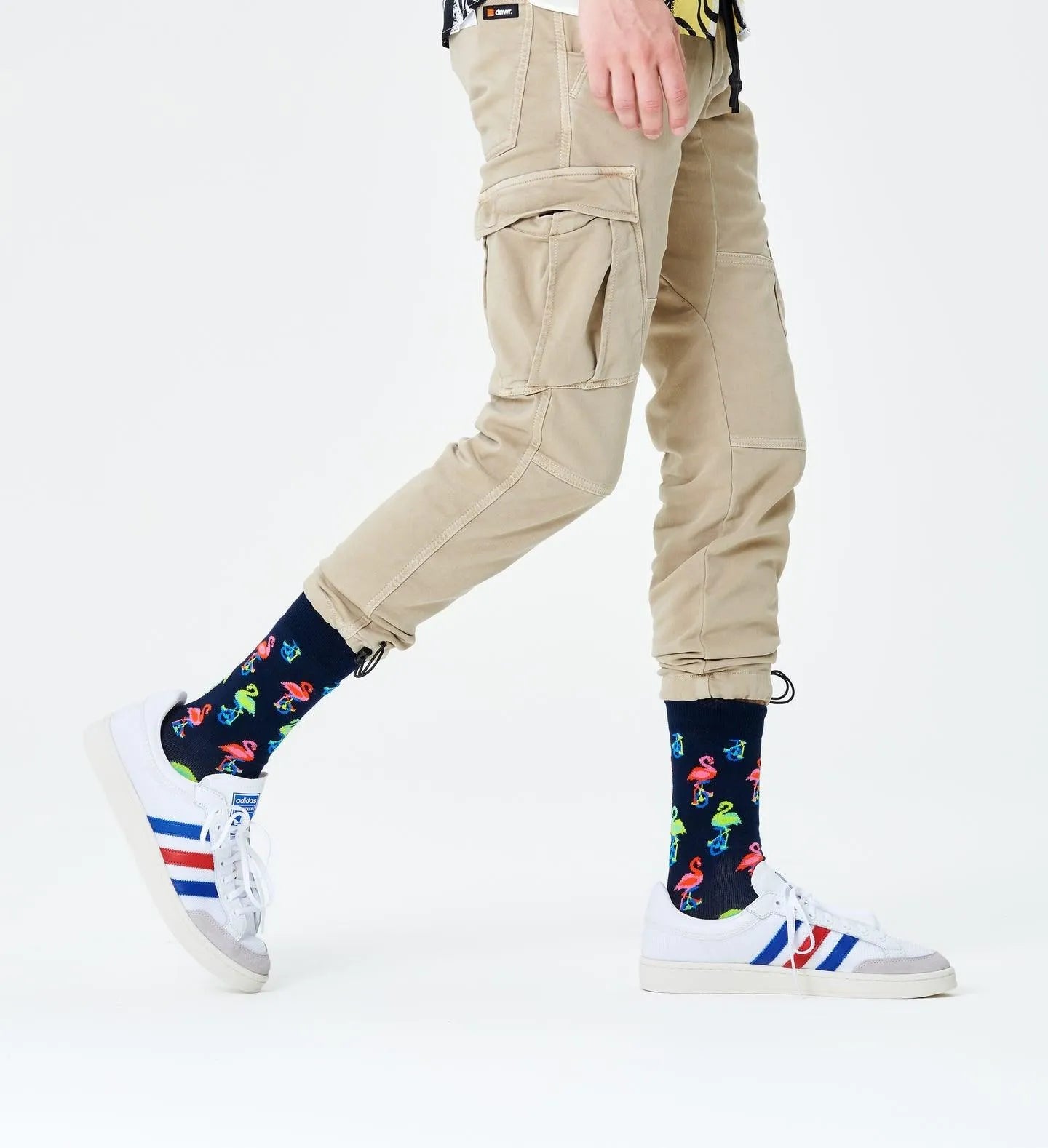 Fühlen Sie sich frei wie ein Vogel mit den Flamingo-Socken. Der sattrosa Feiertagsvogel hat viele Talente. Über hohe Zäune blicken und Einrad fahren sind nur zwei davon. Allerdings ist er schrecklich im Sudoku. Erwähnen Sie sie nicht einmal.