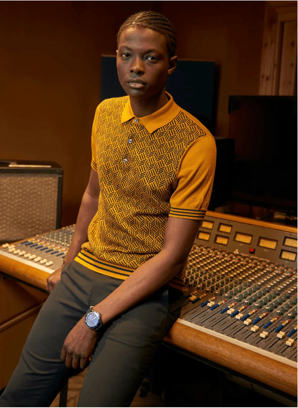 Senfgestricktes Jacquard-Poloshirt