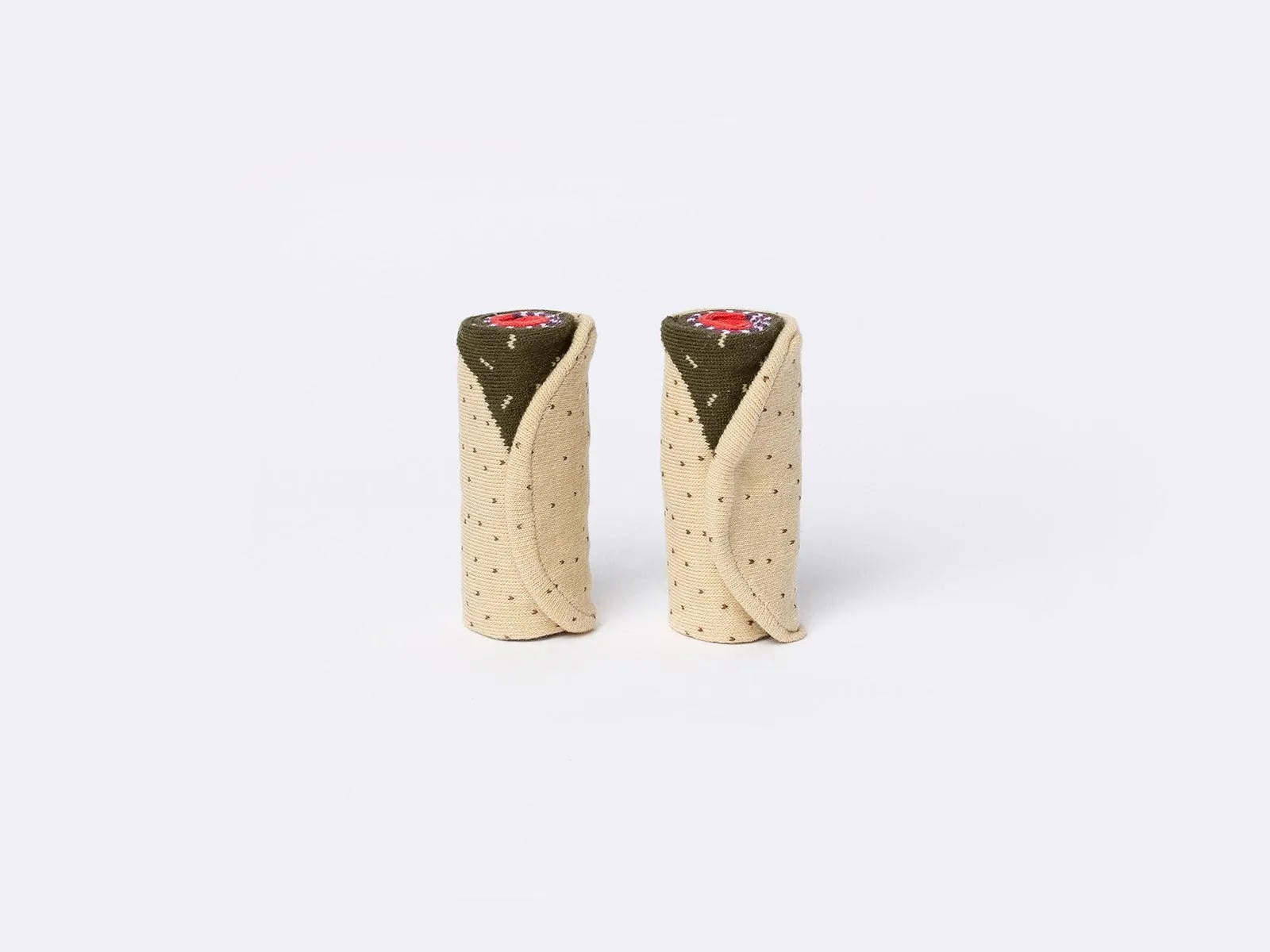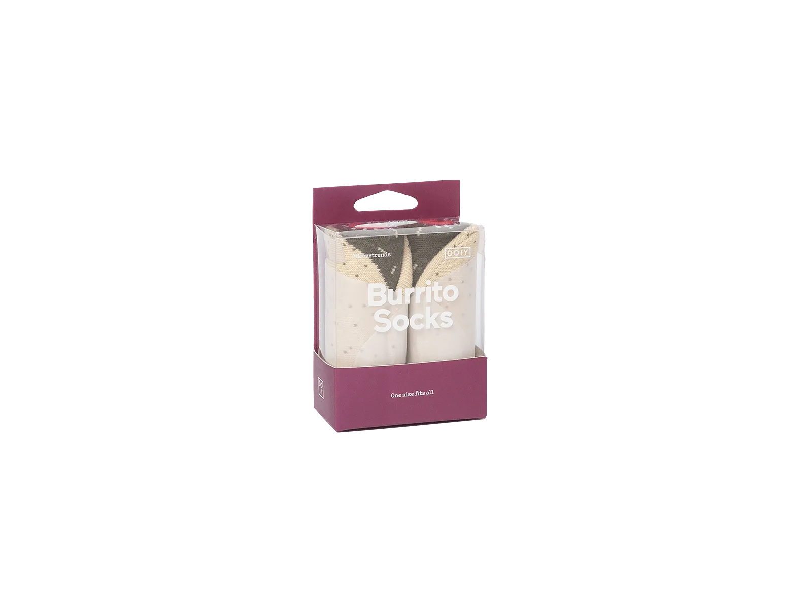 Ein Paar bequeme und lustige Socken in Form von Burritos. Einheitsgröße.