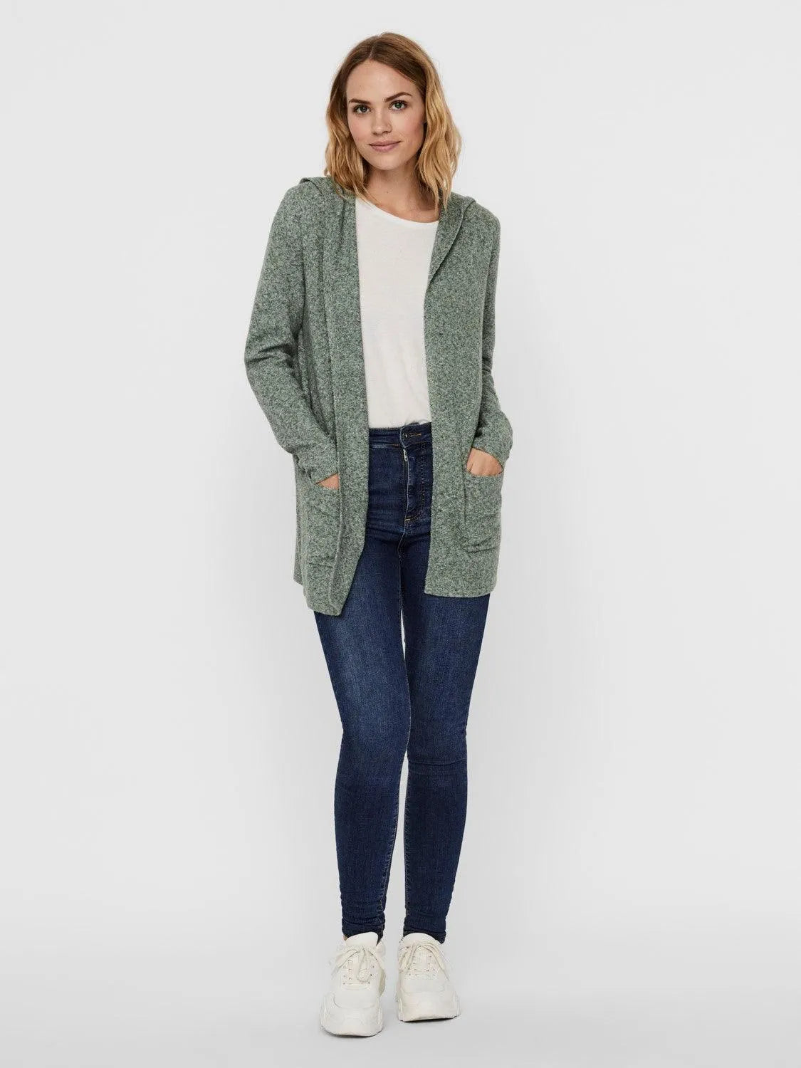 Offener Cardigan mit Kapuze und Vordertaschen aus weichem und elastischem Material. Der Cardigan ist perfekt für den Alltag. Kombinieren Sie es mit Jeans und einem Top für einen lässigen Look.