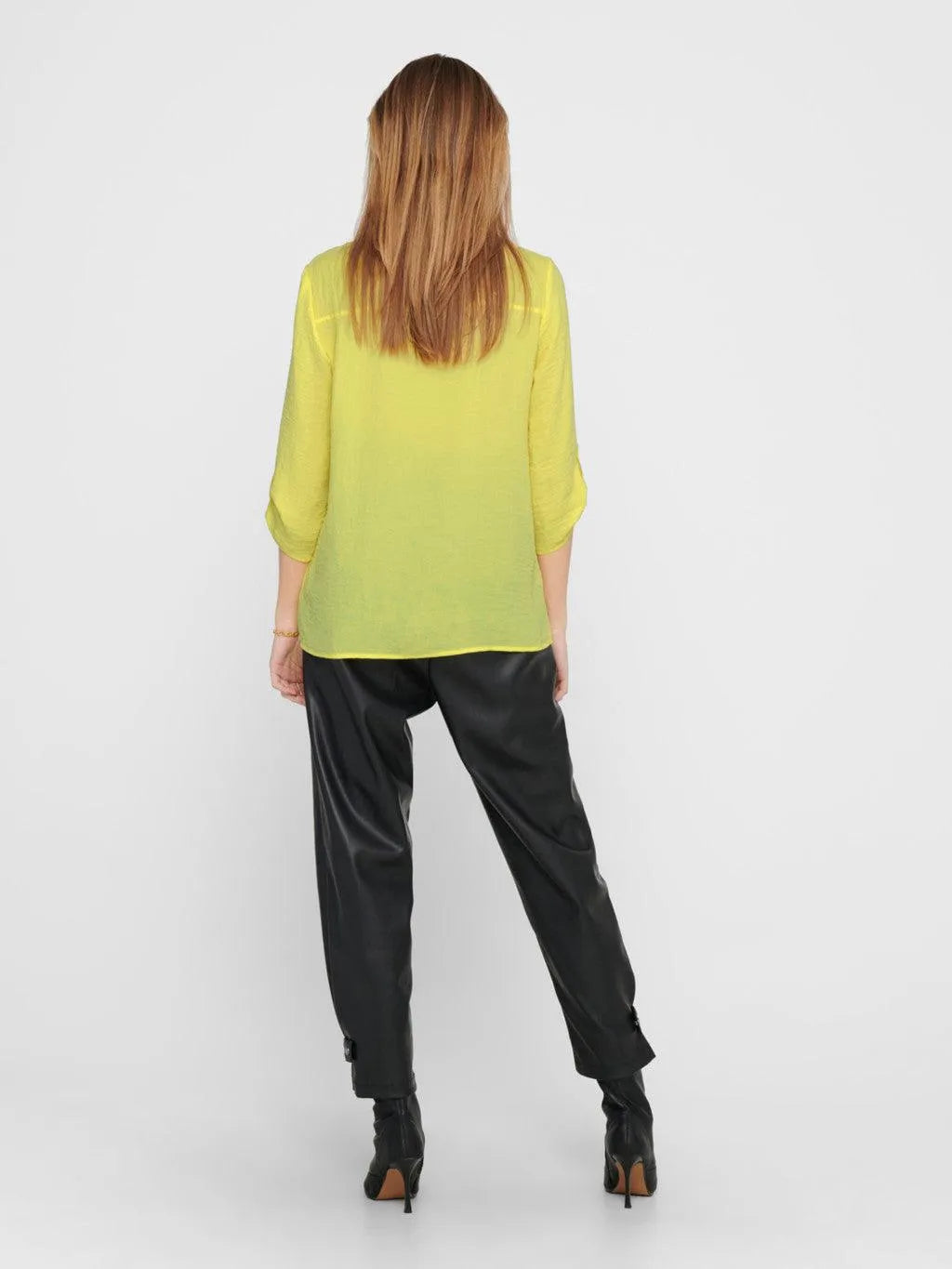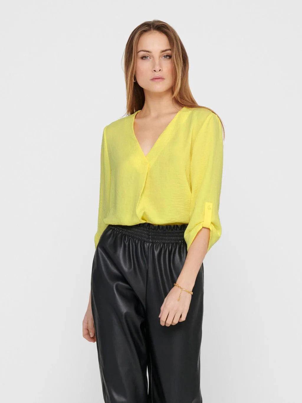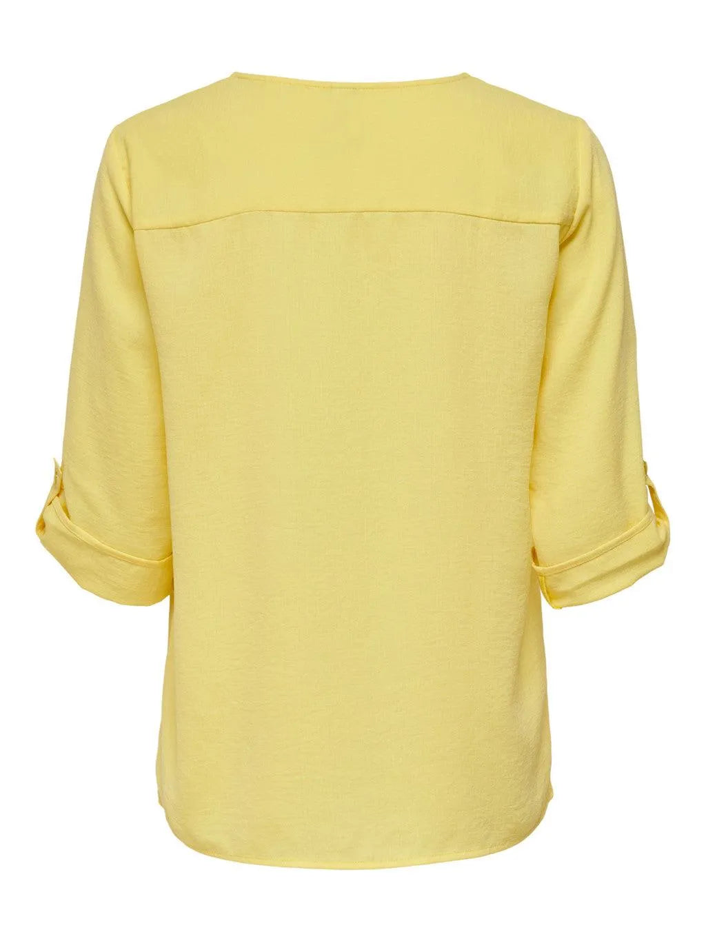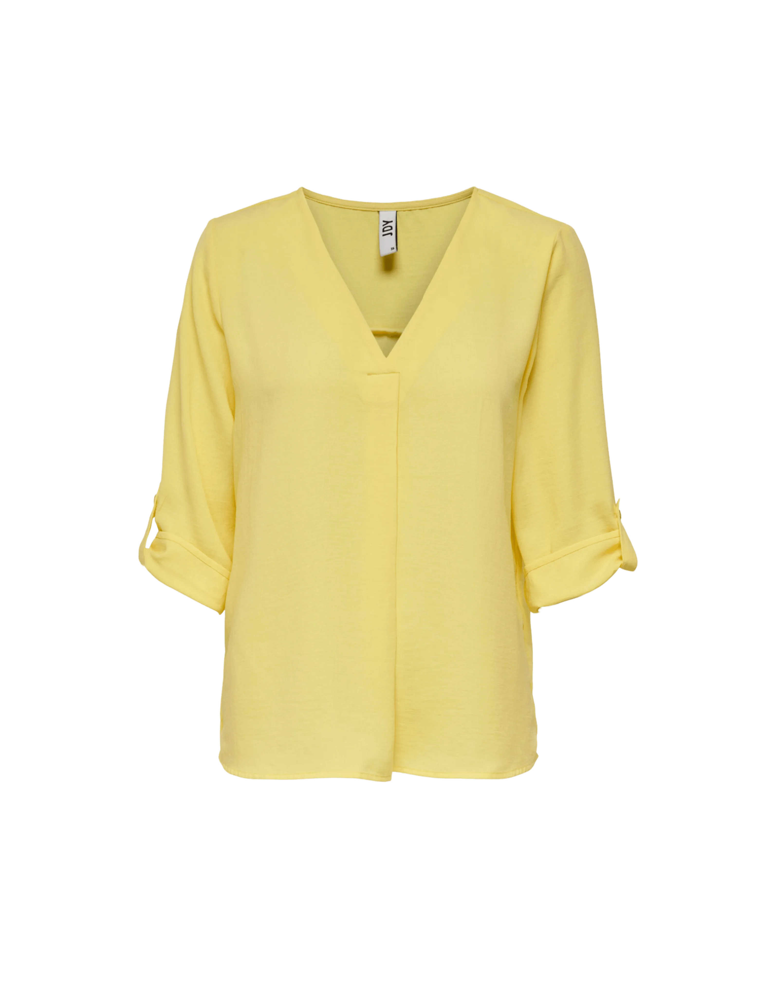 Einfarbiges Oberteil von JDY – V-Ausschnitt – 3/4-Ärmel – Länge: 67 cm in Größe 36 – Das Model trägt Größe 36
