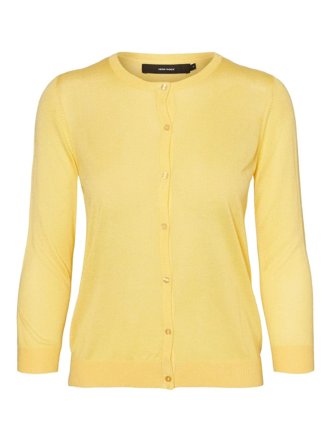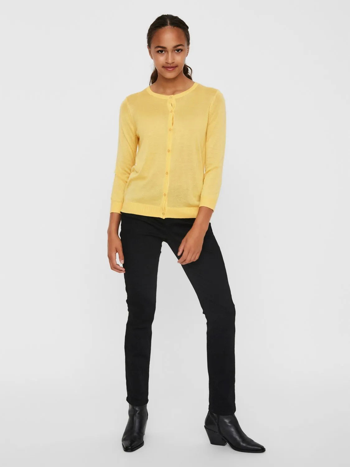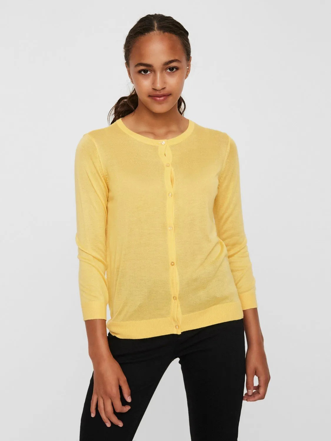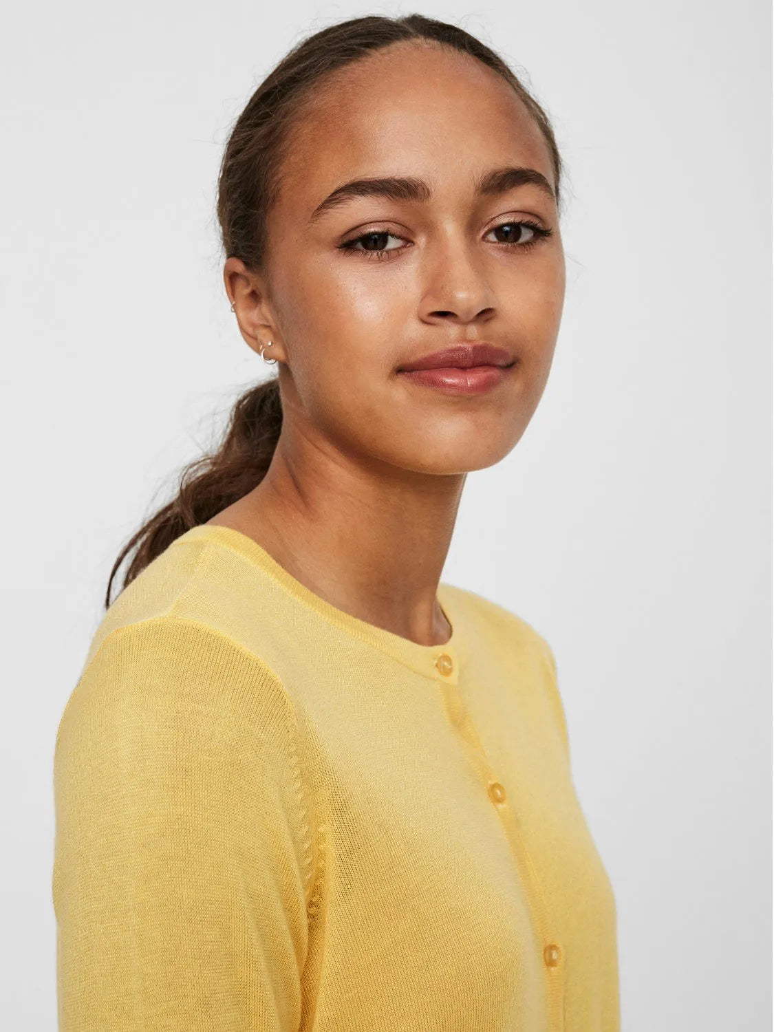 Cardigan mit Knopfverschluss vorne und gerippten Details an Saum und Bündchen. Tragen Sie die Strickjacke mit einem femininen Oberteil, einer Hose und Stiefeln.