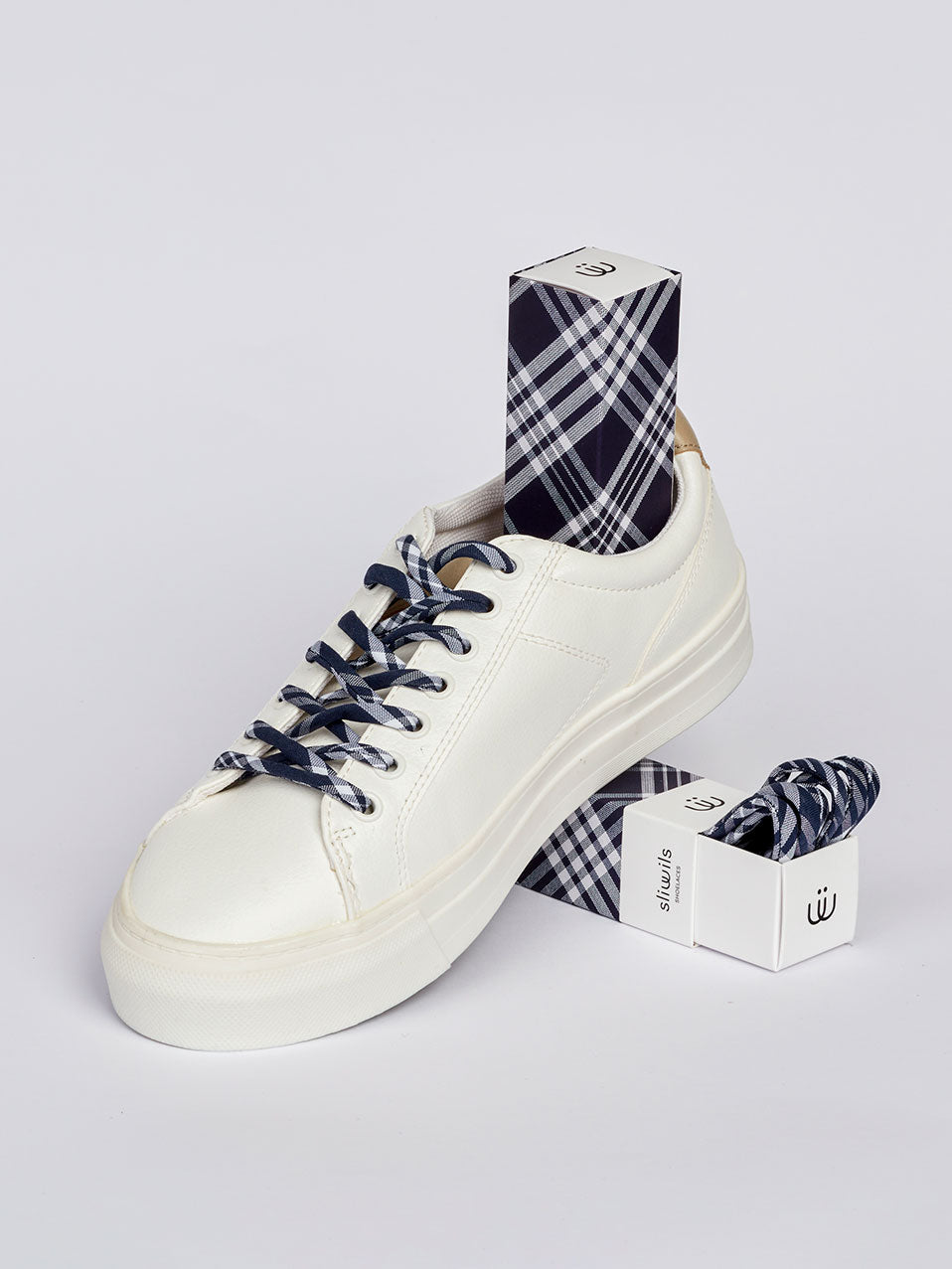 Cordones con diseño de estilo “Oxford” y estampado tipo británico, pensados para aportar un acento clásico y original a tus zapatillas. Su tejido trenzado y acabado resistente los convierten en un accesorio con carácter para combinar fácilmente.