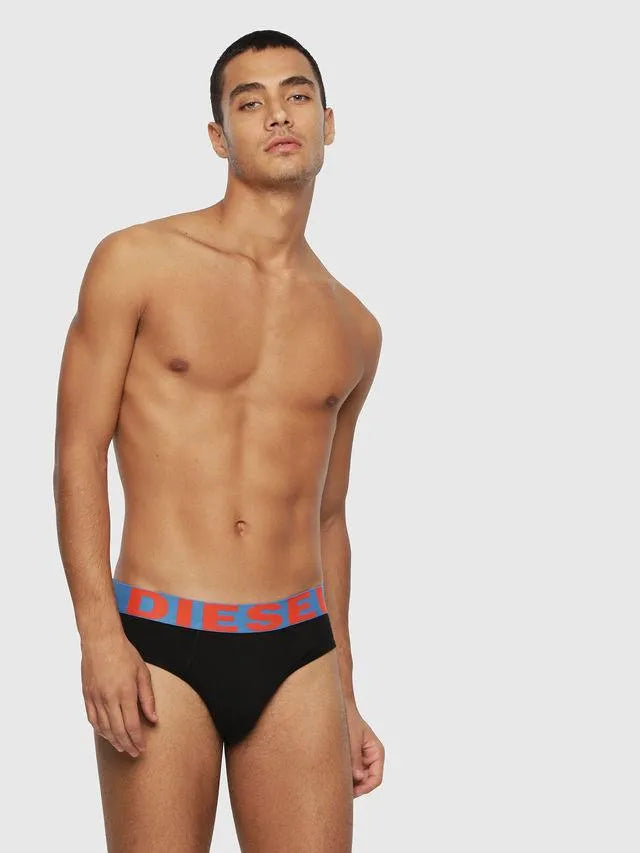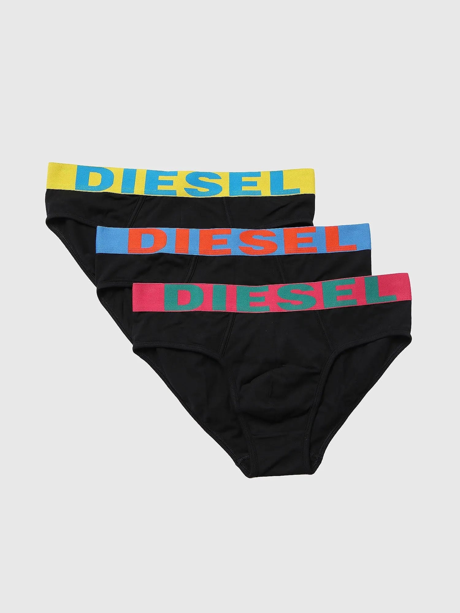 Set aus drei Slips aus weicher Stretch-Baumwolle. Die Taille zeigt kontrastreich das Diesel-Logo.